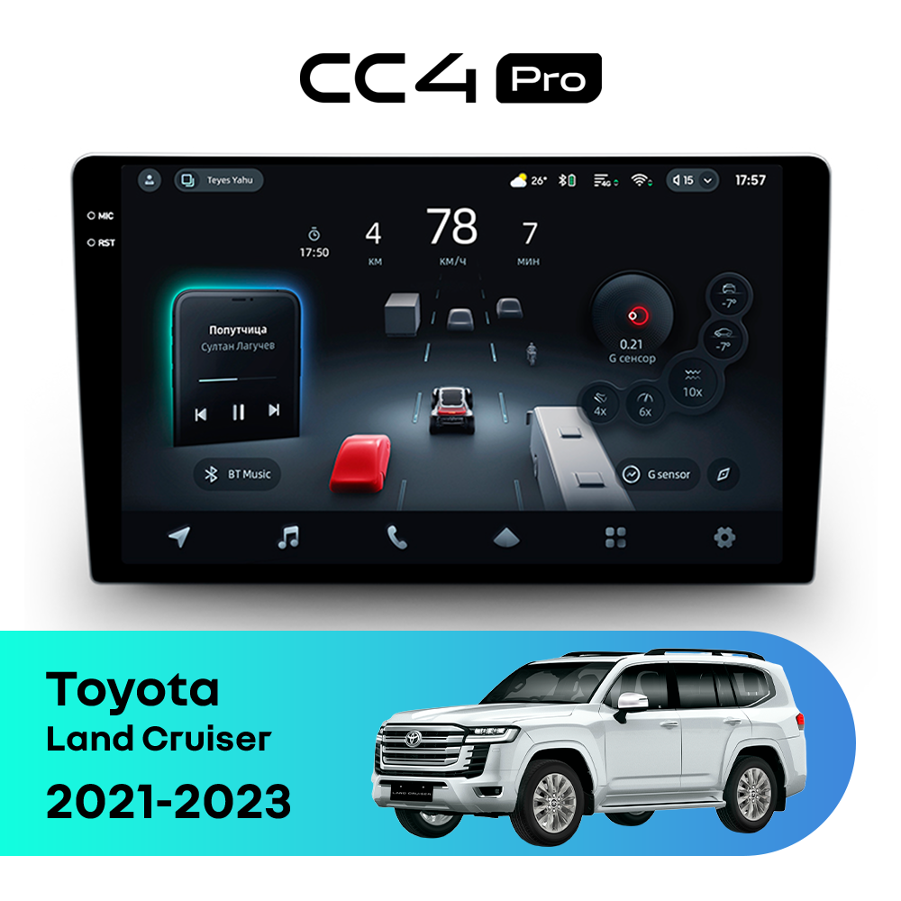 Автомагнитола Teyes CC4 Pro — это флагманская магнитола премиум-класса, созданная для владельцев Toyota Land Cruiser 300 (2021-2023), которые хотят получить максимум от мультимедиа в автомобиле. Магнитола Teyes CC4 Pro превращает салон Toyota Land Cruiser в современный цифровой центр управления с быстрым интерфейсом, топовой производительностью и премиальным изображением. Данная магнитола работает на системе Android и оснащена мощным 8-ядерным процессором Qualcomm QCM6490, что делает автомагнитолу Teyes CC4 Pro одной из самых быстрых магнитол на рынке. Конфигурация 12Gb оперативной памяти и 256Gb встроенной памяти позволяет использовать навигацию, музыку и приложения одновременно без зависаний — идеально для Toyota Land Cruiser (300 (2021-2023)). Магнитола Teyes CC4 Pro оснащена премиальным In-cell QLED дисплеем диагональю 10.36" с высоким разрешением 2000×1200 пикселей, благодаря чему изображение на магнитоле остается ярким и четким при любом освещении в салоне Toyota Land Cruiser. Автомагнитола поддерживает Яндекс Навигатор, Google Maps, YouTube, голосовое управление Teyes, камеры заднего вида и 360°, а также штатные кнопки на руле — всё для максимального комфорта в Toyota Land Cruiser 300 (2021-2023). Магнитола Teyes CC4 Pro — это идеальный выбор для премиальных автомобилей и требовательных водителей, особенно если вы цените комфорт в Toyota Land Cruiser. Если вы ищете лучшую магнитолу Android без компромиссов для Toyota Land Cruiser — автомагнитола Teyes CC4 Pro станет оптимальным решением.