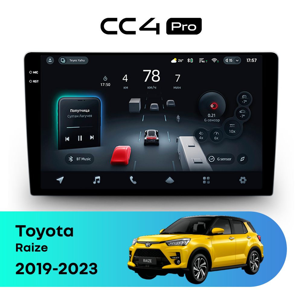 Автомагнитола Teyes CC4 Pro — это флагманская магнитола премиум-класса, созданная для владельцев Toyota Raize I (2019-2023), которые хотят получить максимум от мультимедиа в автомобиле. Магнитола Teyes CC4 Pro превращает салон Toyota Raize в современный цифровой центр управления с быстрым интерфейсом, топовой производительностью и премиальным изображением. Данная магнитола работает на системе Android и оснащена мощным 8-ядерным процессором Qualcomm QCM6490, что делает автомагнитолу Teyes CC4 Pro одной из самых быстрых магнитол на рынке. Конфигурация 12Gb оперативной памяти и 256Gb встроенной памяти позволяет использовать навигацию, музыку и приложения одновременно без зависаний — идеально для Toyota Raize (I (2019-2023)). Магнитола Teyes CC4 Pro оснащена премиальным In-cell QLED дисплеем диагональю 10.36" с высоким разрешением 2000×1200 пикселей, благодаря чему изображение на магнитоле остается ярким и четким при любом освещении в салоне Toyota Raize. Автомагнитола поддерживает Яндекс Навигатор, Google Maps, YouTube, голосовое управление Teyes, камеры заднего вида и 360°, а также штатные кнопки на руле — всё для максимального комфорта в Toyota Raize I (2019-2023). Магнитола Teyes CC4 Pro — это идеальный выбор для премиальных автомобилей и требовательных водителей, особенно если вы цените комфорт в Toyota Raize. Если вы ищете лучшую магнитолу Android без компромиссов для Toyota Raize — автомагнитола Teyes CC4 Pro станет оптимальным решением.