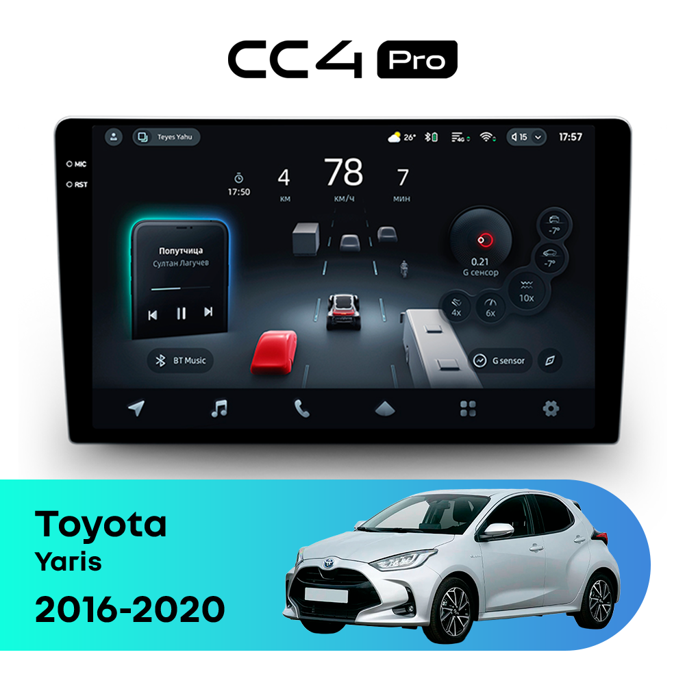 Автомагнитола Teyes CC4 Pro — это флагманская магнитола премиум-класса, созданная для владельцев Toyota Yaris III рестайлинг 2 (2016-2020), которые хотят получить максимум от мультимедиа в автомобиле. Магнитола Teyes CC4 Pro превращает салон Toyota Yaris в современный цифровой центр управления с быстрым интерфейсом, топовой производительностью и премиальным изображением. Данная магнитола работает на системе Android и оснащена мощным 8-ядерным процессором Qualcomm QCM6490, что делает автомагнитолу Teyes CC4 Pro одной из самых быстрых магнитол на рынке. Конфигурация 12Gb оперативной памяти и 256Gb встроенной памяти позволяет использовать навигацию, музыку и приложения одновременно без зависаний — идеально для Toyota Yaris (III рестайлинг 2 (2016-2020)). Магнитола Teyes CC4 Pro оснащена премиальным In-cell QLED дисплеем диагональю 10.36" с высоким разрешением 2000×1200 пикселей, благодаря чему изображение на магнитоле остается ярким и четким при любом освещении в салоне Toyota Yaris. Автомагнитола поддерживает Яндекс Навигатор, Google Maps, YouTube, голосовое управление Teyes, камеры заднего вида и 360°, а также штатные кнопки на руле — всё для максимального комфорта в Toyota Yaris III рестайлинг 2 (2016-2020). Магнитола Teyes CC4 Pro — это идеальный выбор для премиальных автомобилей и требовательных водителей, особенно если вы цените комфорт в Toyota Yaris. Если вы ищете лучшую магнитолу Android без компромиссов для Toyota Yaris — автомагнитола Teyes CC4 Pro станет оптимальным решением.