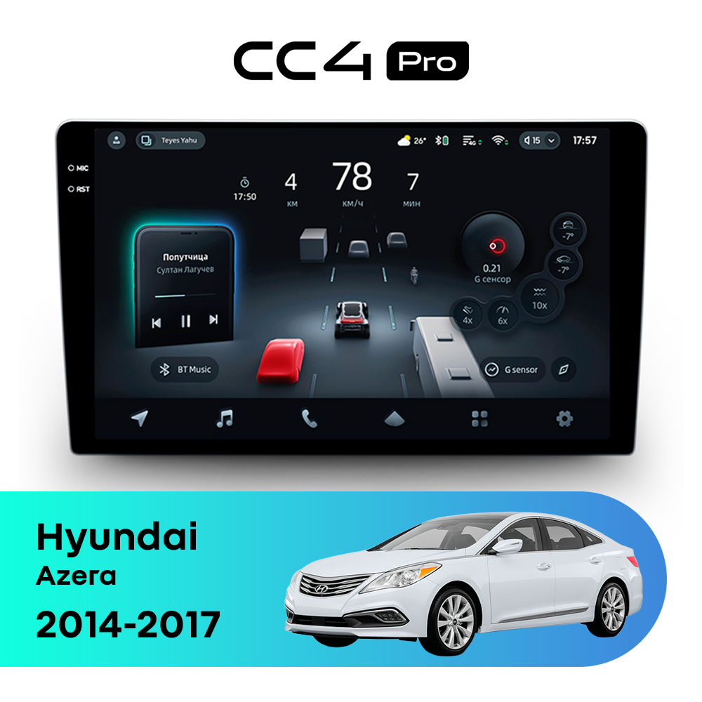 Teyes CC4 Pro для Hyundai Azera 2014-2017 — продвинутая штатная магнитола премиального уровня на базе Teyes OS Android 14, созданная для тех, кто хочет получить максимум комфорта, быстродействия и современных функций в автомобиле.