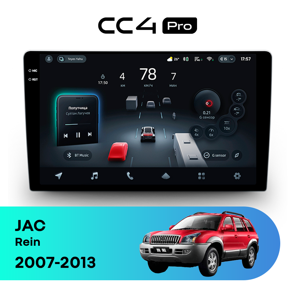 Teyes CC4 Pro для JAC Rein 2007-2013 — продвинутая штатная магнитола премиального уровня на базе Teyes OS Android 14, созданная для тех, кто хочет получить максимум комфорта, быстродействия и современных функций в автомобиле.