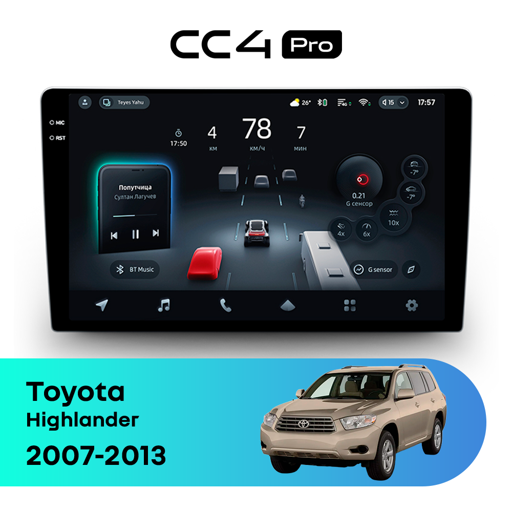 Автомагнитола Teyes CC4 Pro — это флагманская магнитола премиум-класса, созданная для владельцев Toyota Highlander II (2007-2010),II рестайлинг (2010-2013), которые хотят получить максимум от мультимедиа в автомобиле. Магнитола Teyes CC4 Pro превращает салон Toyota Highlander в современный цифровой центр управления с быстрым интерфейсом, топовой производительностью и премиальным изображением. Данная магнитола работает на системе Android и оснащена мощным 8-ядерным процессором Qualcomm QCM6490, что делает автомагнитолу Teyes CC4 Pro одной из самых быстрых магнитол на рынке. Конфигурация 12Gb оперативной памяти и 256Gb встроенной памяти позволяет использовать навигацию, музыку и приложения одновременно без зависаний — идеально для Toyota Highlander (II (2007-2010),II рестайлинг (2010-2013)). Магнитола Teyes CC4 Pro оснащена премиальным In-cell QLED дисплеем диагональю 9.5" с высоким разрешением 2000×1200 пикселей, благодаря чему изображение на магнитоле остается ярким и четким при любом освещении в салоне Toyota Highlander. Автомагнитола поддерживает Яндекс Навигатор, Google Maps, YouTube, голосовое управление Teyes, камеры заднего вида и 360°, а также штатные кнопки на руле — всё для максимального комфорта в Toyota Highlander II (2007-2010),II рестайлинг (2010-2013). Магнитола Teyes CC4 Pro — это идеальный выбор для премиальных автомобилей и требовательных водителей, особенно если вы цените комфорт в Toyota Highlander. Если вы ищете лучшую магнитолу Android без компромиссов для Toyota Highlander — автомагнитола Teyes CC4 Pro станет оптимальным решением.
