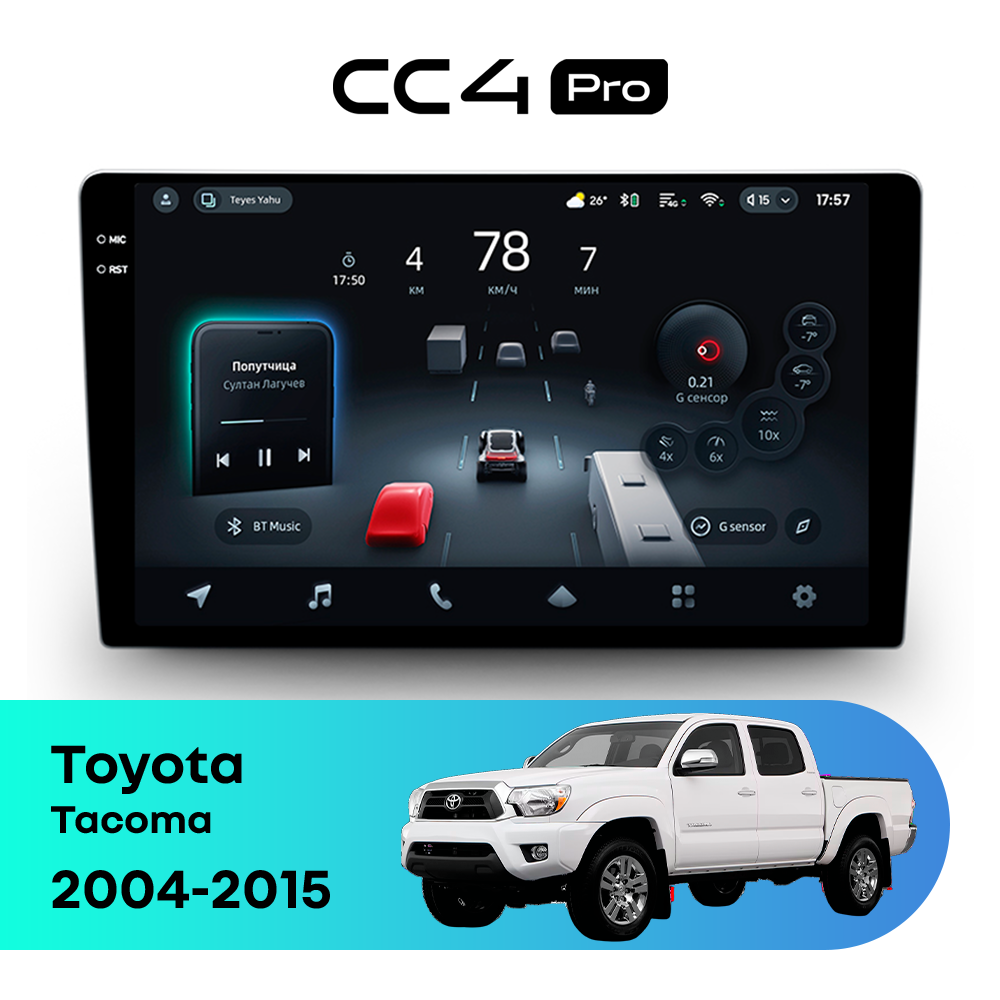 Автомагнитола Teyes CC4 Pro — это флагманская магнитола премиум-класса, созданная для владельцев Toyota Tacoma II (2004-2011),II рестайлинг (2011-2015), которые хотят получить максимум от мультимедиа в автомобиле. Магнитола Teyes CC4 Pro превращает салон Toyota Tacoma в современный цифровой центр управления с быстрым интерфейсом, топовой производительностью и премиальным изображением. Данная магнитола работает на системе Android и оснащена мощным 8-ядерным процессором Qualcomm QCM6490, что делает автомагнитолу Teyes CC4 Pro одной из самых быстрых магнитол на рынке. Конфигурация 12Gb оперативной памяти и 256Gb встроенной памяти позволяет использовать навигацию, музыку и приложения одновременно без зависаний — идеально для Toyota Tacoma (II (2004-2011),II рестайлинг (2011-2015)). Магнитола Teyes CC4 Pro оснащена премиальным In-cell QLED дисплеем диагональю 9.5" с высоким разрешением 2000×1200 пикселей, благодаря чему изображение на магнитоле остается ярким и четким при любом освещении в салоне Toyota Tacoma. Автомагнитола поддерживает Яндекс Навигатор, Google Maps, YouTube, голосовое управление Teyes, камеры заднего вида и 360°, а также штатные кнопки на руле — всё для максимального комфорта в Toyota Tacoma II (2004-2011),II рестайлинг (2011-2015). Магнитола Teyes CC4 Pro — это идеальный выбор для премиальных автомобилей и требовательных водителей, особенно если вы цените комфорт в Toyota Tacoma. Если вы ищете лучшую магнитолу Android без компромиссов для Toyota Tacoma — автомагнитола Teyes CC4 Pro станет оптимальным решением.