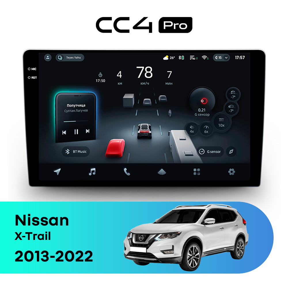 Автомагнитола Teyes CC4 Pro — это флагманская магнитола премиум-класса, созданная для владельцев Nissan X-Trail III (2013-2019),III рестайлинг (2017-2022), которые хотят получить максимум от мультимедиа в автомобиле. Магнитола Teyes CC4 Pro превращает салон Nissan X-Trail в современный цифровой центр управления с быстрым интерфейсом, топовой производительностью и премиальным изображением. Данная магнитола работает на системе Android и оснащена мощным 8-ядерным процессором Qualcomm QCM6490, что делает автомагнитолу Teyes CC4 Pro одной из самых быстрых магнитол на рынке. Конфигурация 8Gb оперативной памяти и 128Gb встроенной памяти позволяет использовать навигацию, музыку и приложения одновременно без зависаний — идеально для Nissan X-Trail (III (2013-2019),III рестайлинг (2017-2022)). Магнитола Teyes CC4 Pro оснащена премиальным In-cell QLED дисплеем диагональю 10.36" с высоким разрешением 2000×1200 пикселей, благодаря чему изображение на магнитоле остается ярким и четким при любом освещении в салоне Nissan X-Trail. Автомагнитола поддерживает Яндекс Навигатор, Google Maps, YouTube, голосовое управление Teyes, камеры заднего вида и 360°, а также штатные кнопки на руле — всё для максимального комфорта в Nissan X-Trail III (2013-2019),III рестайлинг (2017-2022). Магнитола Teyes CC4 Pro — это идеальный выбор для премиальных автомобилей и требовательных водителей, особенно если вы цените комфорт в Nissan X-Trail. Если вы ищете лучшую магнитолу Android без компромиссов для Nissan X-Trail — автомагнитола Teyes CC4 Pro станет оптимальным решением.