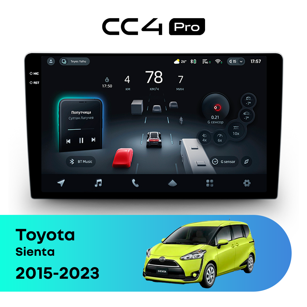 Автомагнитола Teyes CC4 Pro — это флагманская магнитола премиум-класса, созданная для владельцев Toyota Sienta II (2015-2023), которые хотят получить максимум от мультимедиа в автомобиле. Магнитола Teyes CC4 Pro превращает салон Toyota Sienta в современный цифровой центр управления с быстрым интерфейсом, топовой производительностью и премиальным изображением. Данная магнитола работает на системе Android и оснащена мощным 8-ядерным процессором Qualcomm QCM6490, что делает автомагнитолу Teyes CC4 Pro одной из самых быстрых магнитол на рынке. Конфигурация 8Gb оперативной памяти и 128Gb встроенной памяти позволяет использовать навигацию, музыку и приложения одновременно без зависаний — идеально для Toyota Sienta (II (2015-2023)). Магнитола Teyes CC4 Pro оснащена премиальным In-cell QLED дисплеем диагональю 10.36" с высоким разрешением 2000×1200 пикселей, благодаря чему изображение на магнитоле остается ярким и четким при любом освещении в салоне Toyota Sienta. Автомагнитола поддерживает Яндекс Навигатор, Google Maps, YouTube, голосовое управление Teyes, камеры заднего вида и 360°, а также штатные кнопки на руле — всё для максимального комфорта в Toyota Sienta II (2015-2023). Магнитола Teyes CC4 Pro — это идеальный выбор для премиальных автомобилей и требовательных водителей, особенно если вы цените комфорт в Toyota Sienta. Если вы ищете лучшую магнитолу Android без компромиссов для Toyota Sienta — автомагнитола Teyes CC4 Pro станет оптимальным решением.