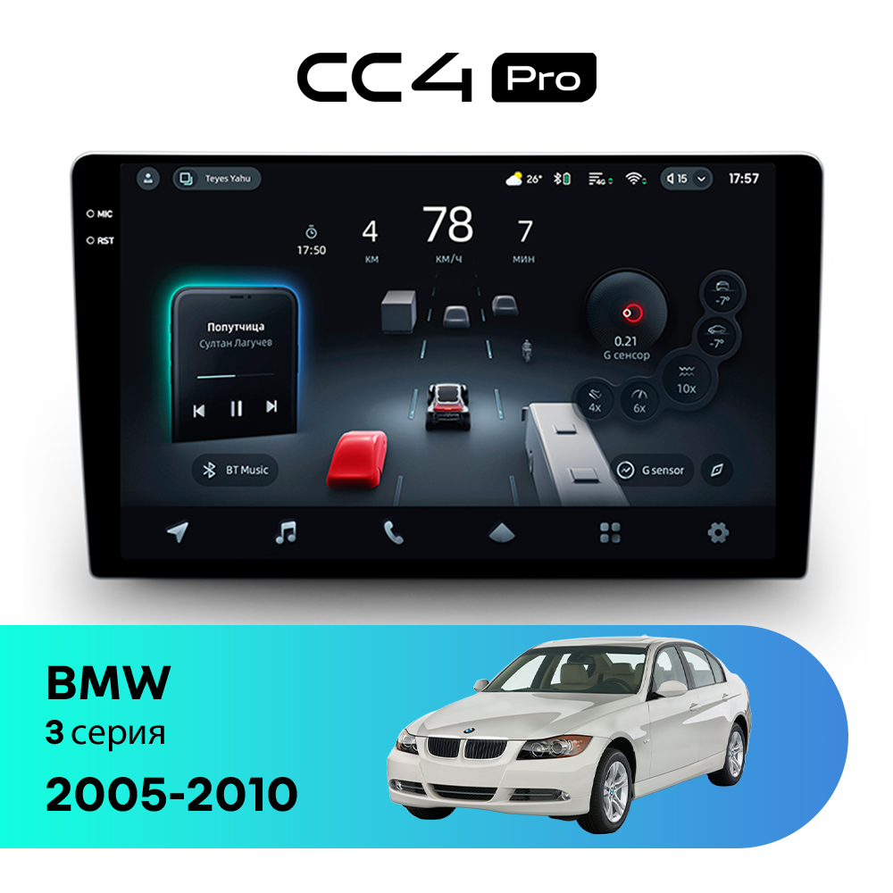 Teyes CC4 Pro для BMW 3 серия 2005-2010 — продвинутая штатная магнитола премиального уровня на базе Teyes OS Android 14, созданная для тех, кто хочет получить максимум комфорта, быстродействия и современных функций в автомобиле.