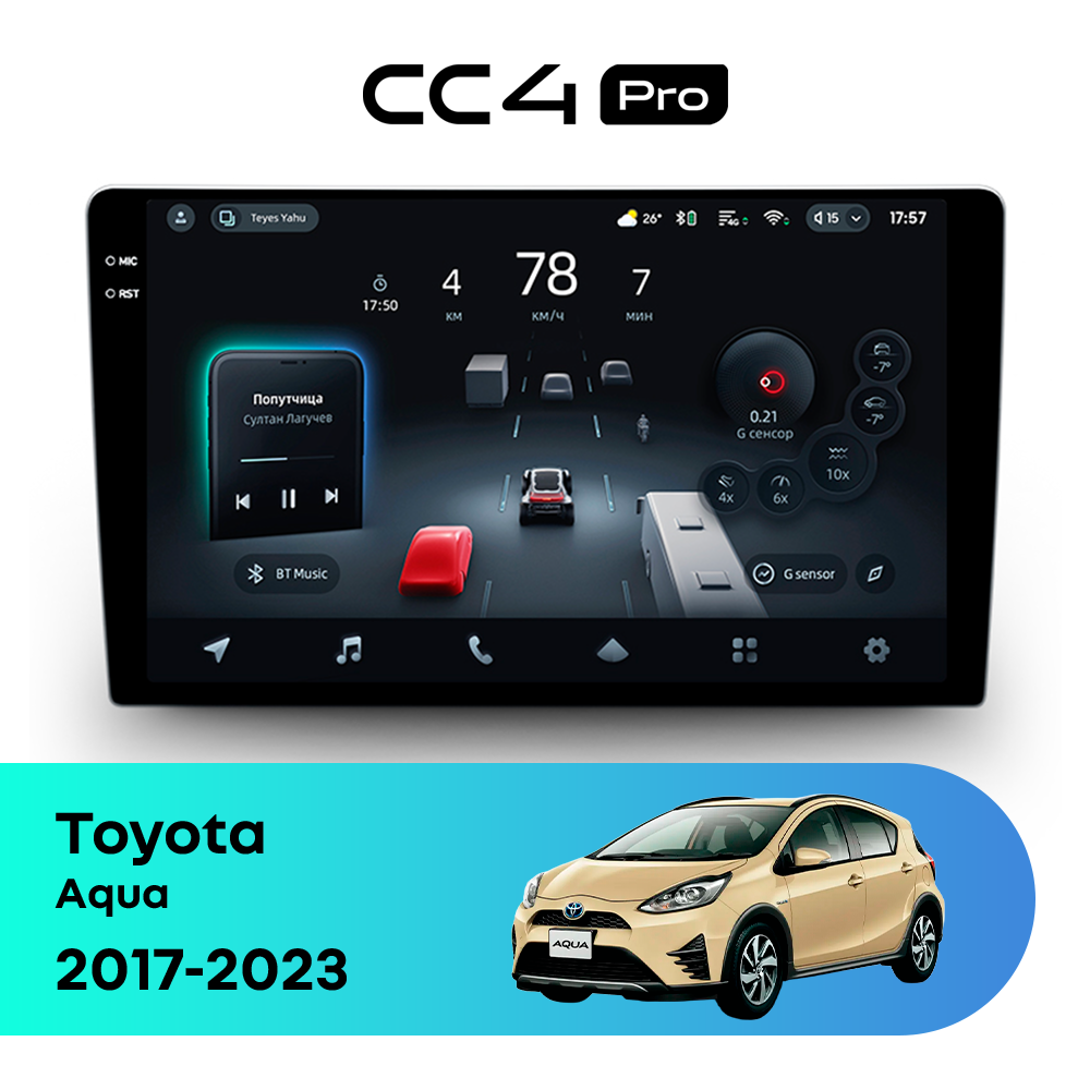 Автомагнитола Teyes CC4 Pro — это флагманская магнитола премиум-класса, созданная для владельцев Toyota Aqua I рестайлинг 2 (2017-2023), которые хотят получить максимум от мультимедиа в автомобиле. Магнитола Teyes CC4 Pro превращает салон Toyota Aqua в современный цифровой центр управления с быстрым интерфейсом, топовой производительностью и премиальным изображением. Данная магнитола работает на системе Android и оснащена мощным 8-ядерным процессором Qualcomm QCM6490, что делает автомагнитолу Teyes CC4 Pro одной из самых быстрых магнитол на рынке. Конфигурация 8Gb оперативной памяти и 128Gb встроенной памяти позволяет использовать навигацию, музыку и приложения одновременно без зависаний — идеально для Toyota Aqua (I рестайлинг 2 (2017-2023)). Магнитола Teyes CC4 Pro оснащена премиальным In-cell QLED дисплеем диагональю 9.5" с высоким разрешением 2000×1200 пикселей, благодаря чему изображение на магнитоле остается ярким и четким при любом освещении в салоне Toyota Aqua. Автомагнитола поддерживает Яндекс Навигатор, Google Maps, YouTube, голосовое управление Teyes, камеры заднего вида и 360°, а также штатные кнопки на руле — всё для максимального комфорта в Toyota Aqua I рестайлинг 2 (2017-2023). Магнитола Teyes CC4 Pro — это идеальный выбор для премиальных автомобилей и требовательных водителей, особенно если вы цените комфорт в Toyota Aqua. Если вы ищете лучшую магнитолу Android без компромиссов для Toyota Aqua — автомагнитола Teyes CC4 Pro станет оптимальным решением.