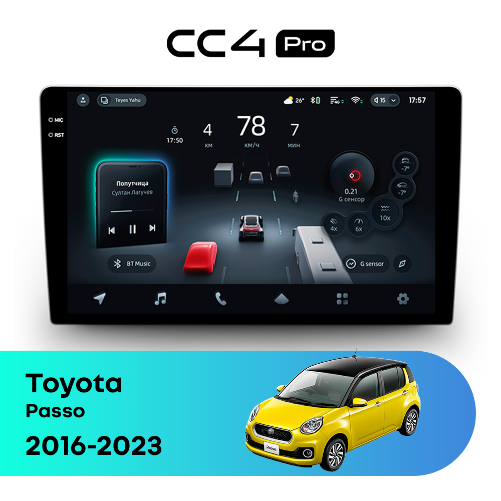 Автомагнитола Teyes CC4 Pro — это флагманская магнитола премиум-класса, созданная для владельцев Toyota Passo III (2016-2023), которые хотят получить максимум от мультимедиа в автомобиле. Магнитола Teyes CC4 Pro превращает салон Toyota Passo в современный цифровой центр управления с быстрым интерфейсом, топовой производительностью и премиальным изображением. Данная магнитола работает на системе Android и оснащена мощным 8-ядерным процессором Qualcomm QCM6490, что делает автомагнитолу Teyes CC4 Pro одной из самых быстрых магнитол на рынке. Конфигурация 8Gb оперативной памяти и 128Gb встроенной памяти позволяет использовать навигацию, музыку и приложения одновременно без зависаний — идеально для Toyota Passo (III (2016-2023)). Магнитола Teyes CC4 Pro оснащена премиальным In-cell QLED дисплеем диагональю 9.5" с высоким разрешением 2000×1200 пикселей, благодаря чему изображение на магнитоле остается ярким и четким при любом освещении в салоне Toyota Passo. Автомагнитола поддерживает Яндекс Навигатор, Google Maps, YouTube, голосовое управление Teyes, камеры заднего вида и 360°, а также штатные кнопки на руле — всё для максимального комфорта в Toyota Passo III (2016-2023). Магнитола Teyes CC4 Pro — это идеальный выбор для премиальных автомобилей и требовательных водителей, особенно если вы цените комфорт в Toyota Passo. Если вы ищете лучшую магнитолу Android без компромиссов для Toyota Passo — автомагнитола Teyes CC4 Pro станет оптимальным решением.