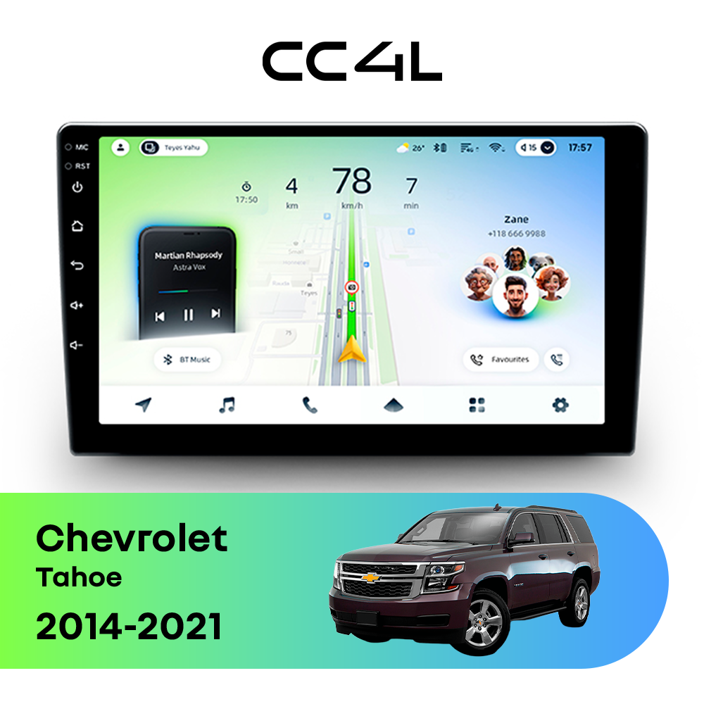 Teyes CC4L для Chevrolet Tahoe IV (2014-2021) — это современная штатная магнитола Android, созданная для тех, кто хочет получить максимум полезных функций за разумные деньги. Если вам нужна автомагнитола для Chevrolet Tahoe с большим экраном, удобной навигацией, поддержкой приложений и приятным интерфейсом, эта модель станет отличным выбором для ежедневной эксплуатации.