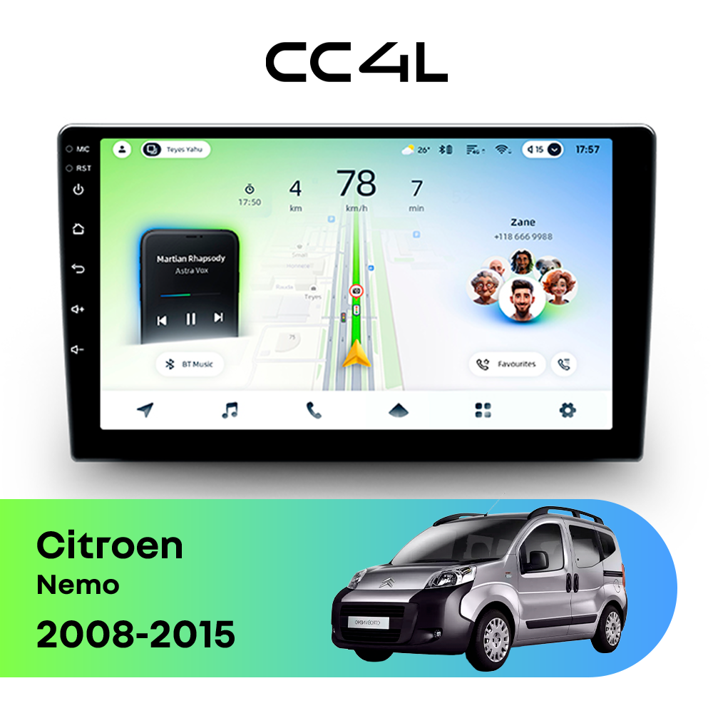 Teyes CC4L для Citroen Nemo I (2008-2015) — это современная штатная магнитола Android, созданная для тех, кто хочет получить максимум полезных функций за разумные деньги. Если вам нужна автомагнитола для Citroen Nemo с большим экраном, удобной навигацией, поддержкой приложений и приятным интерфейсом, эта модель станет отличным выбором для ежедневной эксплуатации.