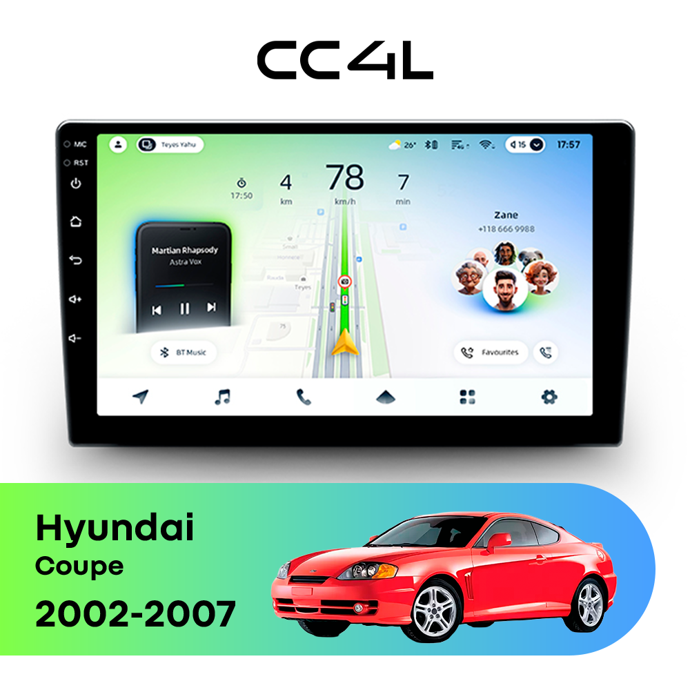 Если вам нужна магнитола для Hyundai Coupe II (2002-2007), штатное головное устройство Android, мультимедиа в авто, автомагнитола с большим экраном и хорошим набором функций по доступной цене, Teyes CC4L станет грамотной покупкой на каждый день.