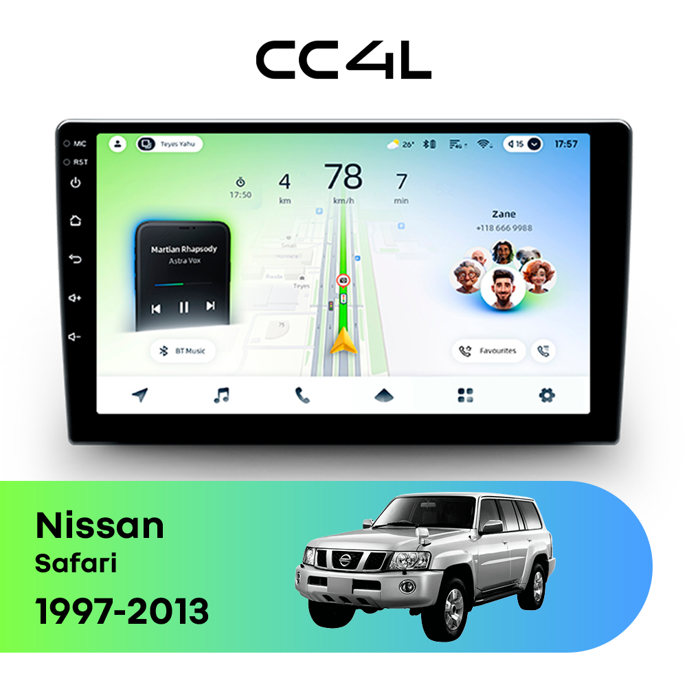 Teyes CC4L для Nissan Safari 1997-2013 — современная штатная магнитола на базе Teyes OS Android 14, которая сочетает удобный Android-интерфейс, востребованные функции и доступный формат для повседневного использования в автомобиле.