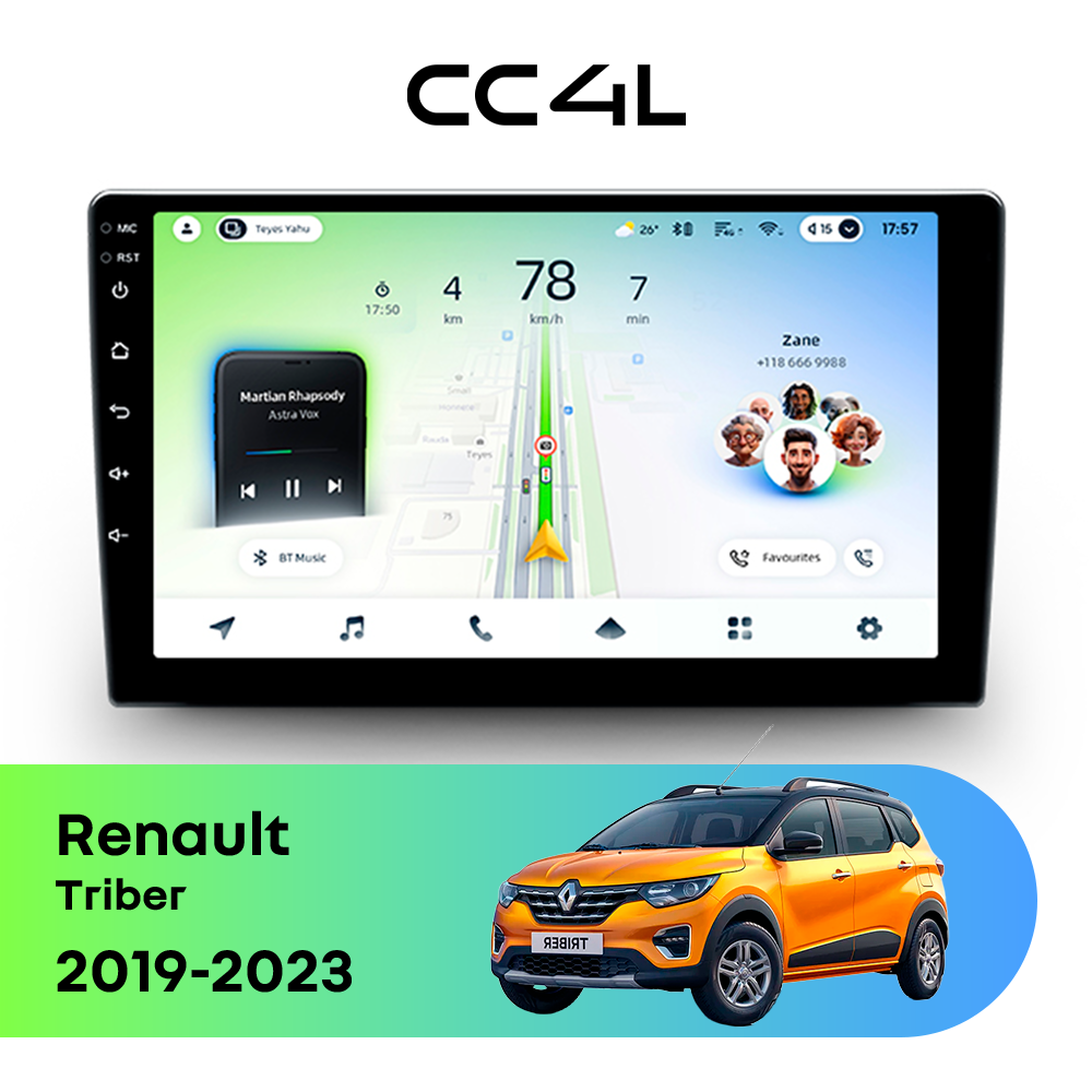 Если вам нужна магнитола для Renault Triber I (2019-2023), штатное головное устройство Android, мультимедиа в авто, автомагнитола с большим экраном и хорошим набором функций по доступной цене, Teyes CC4L станет грамотной покупкой на каждый день.