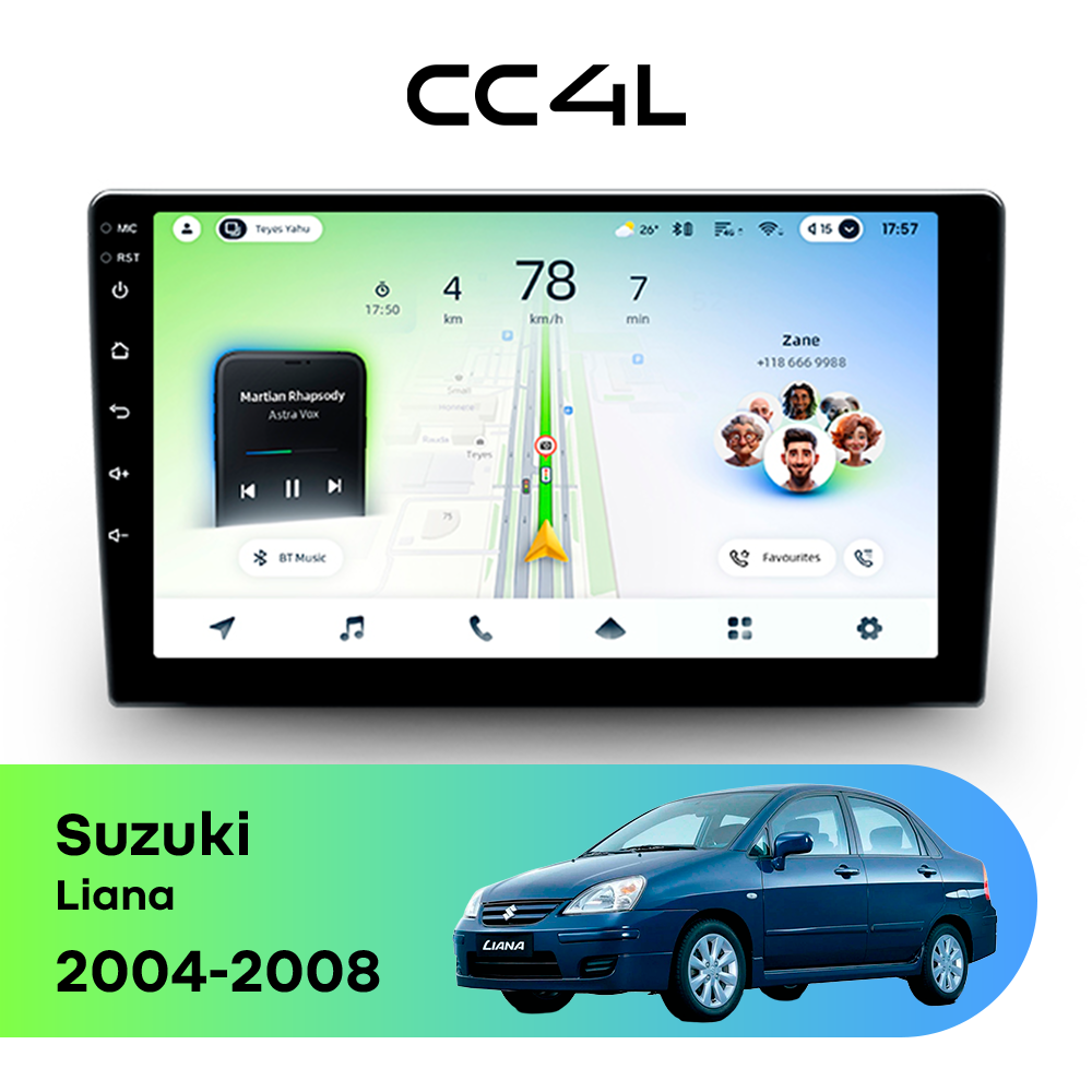 Teyes CC4L для Suzuki Liana 2004-2008 — современная штатная магнитола на базе Teyes OS Android 14, которая сочетает удобный Android-интерфейс, востребованные функции и доступный формат для повседневного использования в автомобиле.