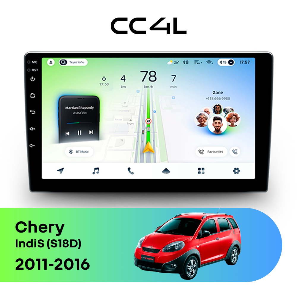 Конфигурация памяти 4/64 Gb позволяет уверенно использовать основные функции: навигатор, музыку, громкую связь, потоковые сервисы, интернет-радио и другие востребованные приложения. Для владельцев Chery IndiS (S18D) S18D (2011-2016), которые ищут бюджетную магнитолу на Android, штатную магнитолу с экраном и головное устройство в автомобиль без переплаты за избыточные опции, Teyes CC4L является очень удачным решением.