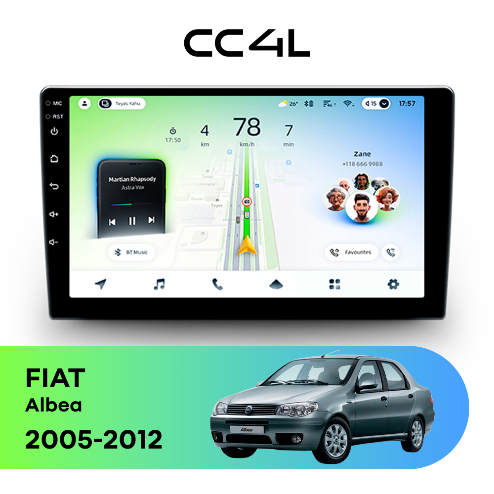 Конфигурация памяти 4/64 Gb позволяет уверенно использовать основные функции: навигатор, музыку, громкую связь, потоковые сервисы, интернет-радио и другие востребованные приложения. Для владельцев FIAT Albea I рестайлинг (2005-2012), которые ищут бюджетную магнитолу на Android, штатную магнитолу с экраном и головное устройство в автомобиль без переплаты за избыточные опции, Teyes CC4L является очень удачным решением.