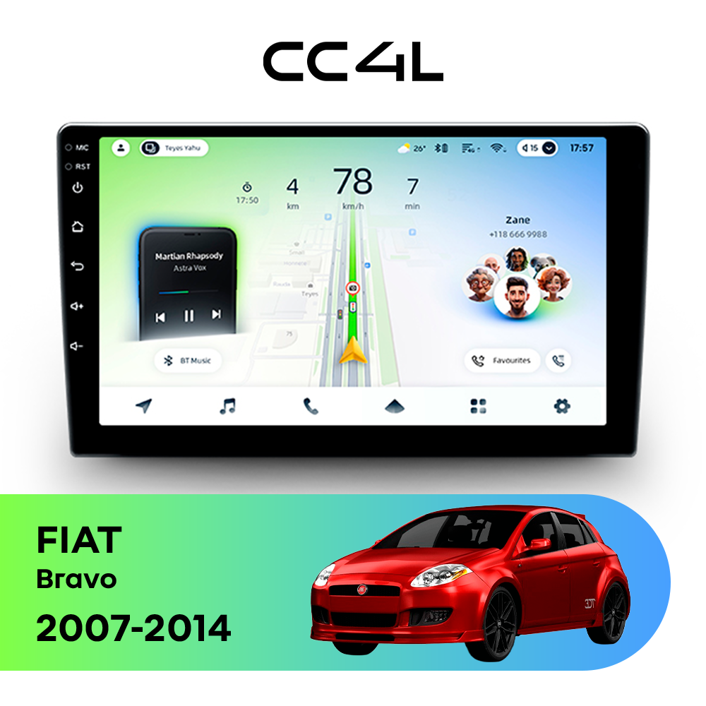 Если вам нужна магнитола для FIAT Bravo II (2007-2014), штатное головное устройство Android, мультимедиа в авто, автомагнитола с большим экраном и хорошим набором функций по доступной цене, Teyes CC4L станет грамотной покупкой на каждый день.