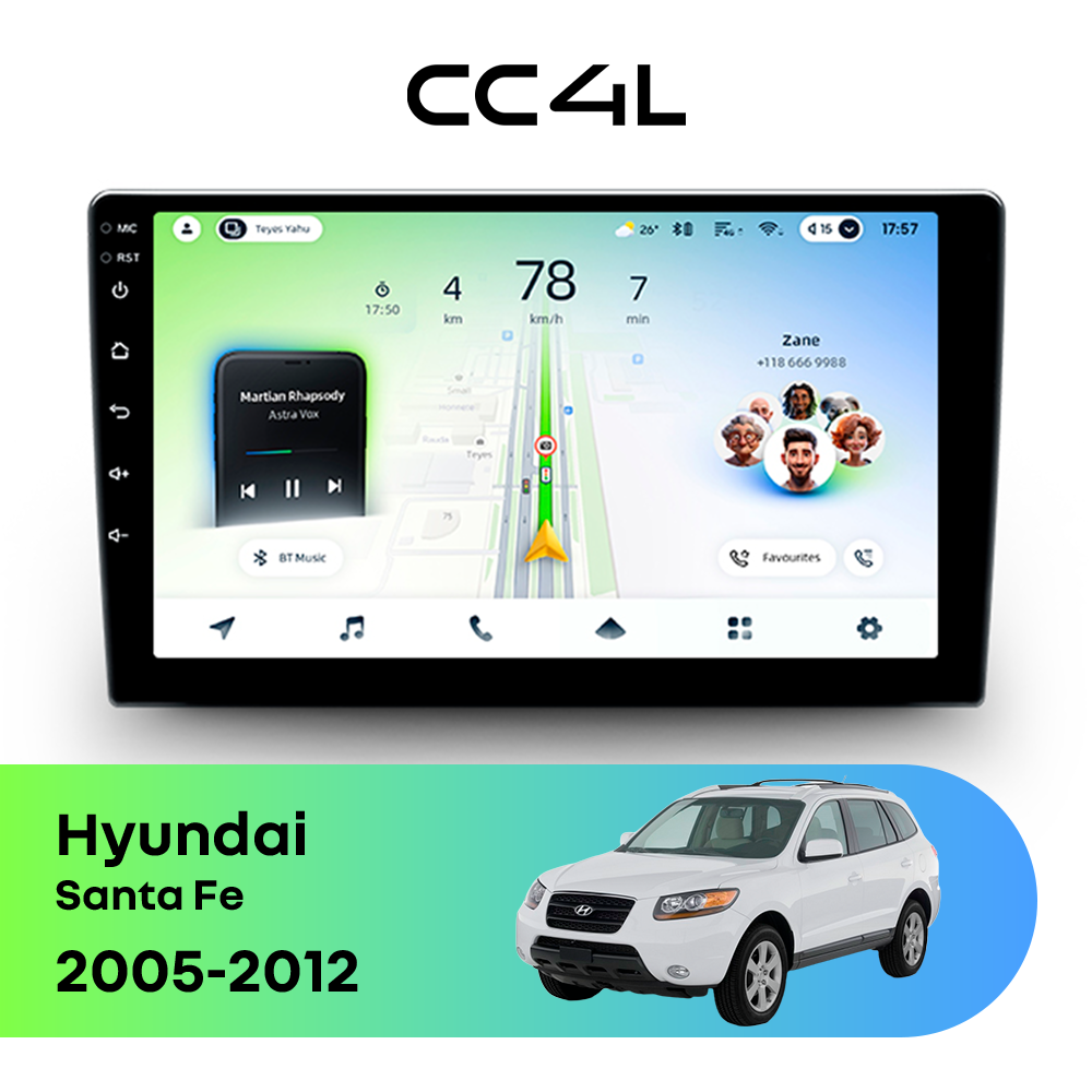 Teyes CC4L для Hyundai Santa Fe II (2005-2010),II рестайлинг (2010-2012) — это современная штатная магнитола Android, созданная для тех, кто хочет получить максимум полезных функций за разумные деньги. Если вам нужна автомагнитола для Hyundai Santa Fe с большим экраном, удобной навигацией, поддержкой приложений и приятным интерфейсом, эта модель станет отличным выбором для ежедневной эксплуатации.