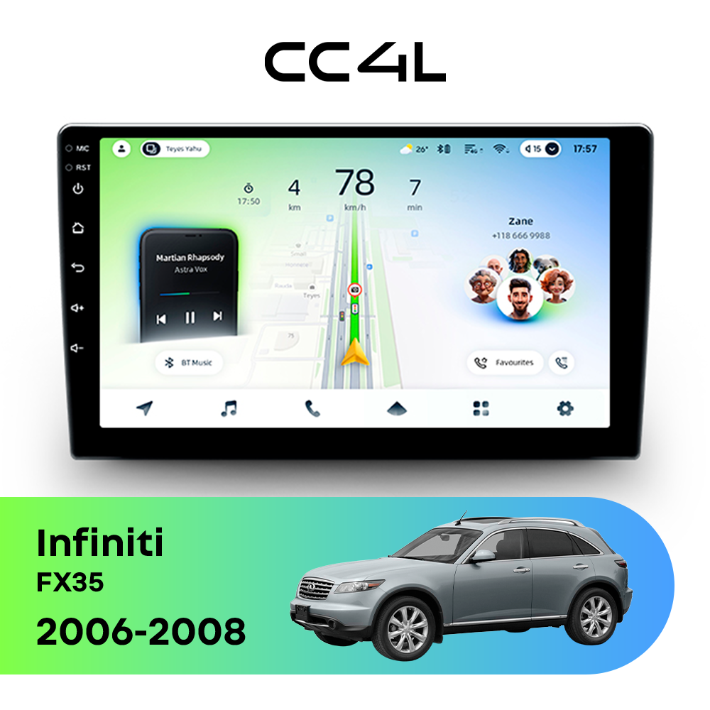 Автомагнитола Teyes CC4L — это доступная магнитола Android, созданная для владельцев Infiniti FX35 I рестайлинг (2006-2008), которым нужна практичная и функциональная мультимедийная система без переплаты. Магнитола Teyes CC4L делает салон Infiniti FX35 более удобным и современным для повседневных поездок, предлагая все основные возможности Android магнитолы. Данная магнитола работает на системе Android и оснащена энергоэффективным 8-ядерным процессором Qualcomm QCM2290, который обеспечивает стабильную работу навигации, музыки и мультимедиа в автомобиле. Конфигурация 4Gb оперативной памяти и 64Gb встроенной памяти оптимально подходит для базовых задач — навигации, музыки и видео в Infiniti FX35 (I рестайлинг (2006-2008)). Магнитола Teyes CC4L оборудована In-cell QLED дисплеем диагональю 9" с разрешением 1280×720 пикселей, что обеспечивает хорошее качество изображения для своего ценового сегмента и комфортное использование в салоне Infiniti FX35. Автомагнитола поддерживает Яндекс Навигатор, YouTube, Google Play, камеру заднего вида и штатные кнопки на руле — всё необходимое для удобной и безопасной эксплуатации в Infiniti FX35 I рестайлинг (2006-2008). Магнитола Teyes CC4L — одно из лучших бюджетных решений среди Android магнитол. Если вам нужна недорогая, надежная и современная магнитола для Infiniti FX35 — автомагнитола Teyes CC4L станет правильным выбором.