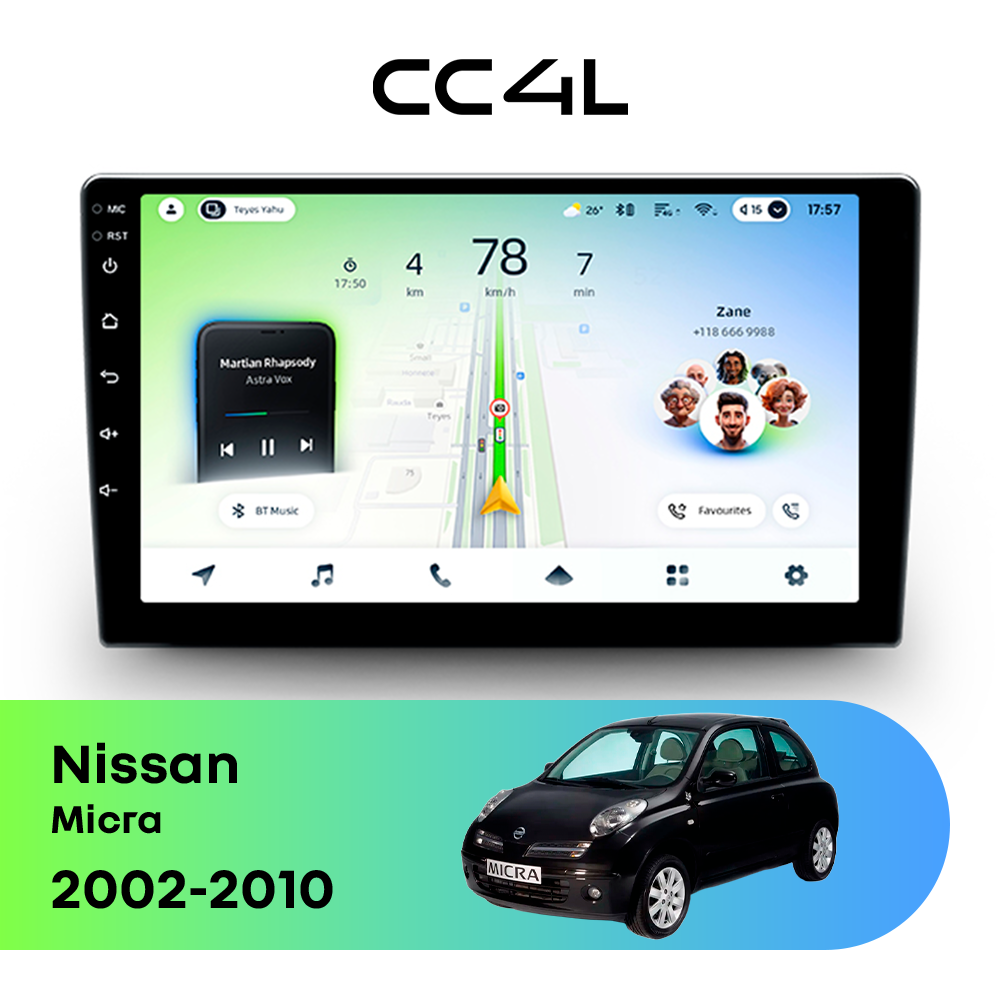 Teyes CC4L для Nissan Micra 2002-2010 — современная штатная магнитола на базе Teyes OS Android 14, которая сочетает удобный Android-интерфейс, востребованные функции и доступный формат для повседневного использования в автомобиле.