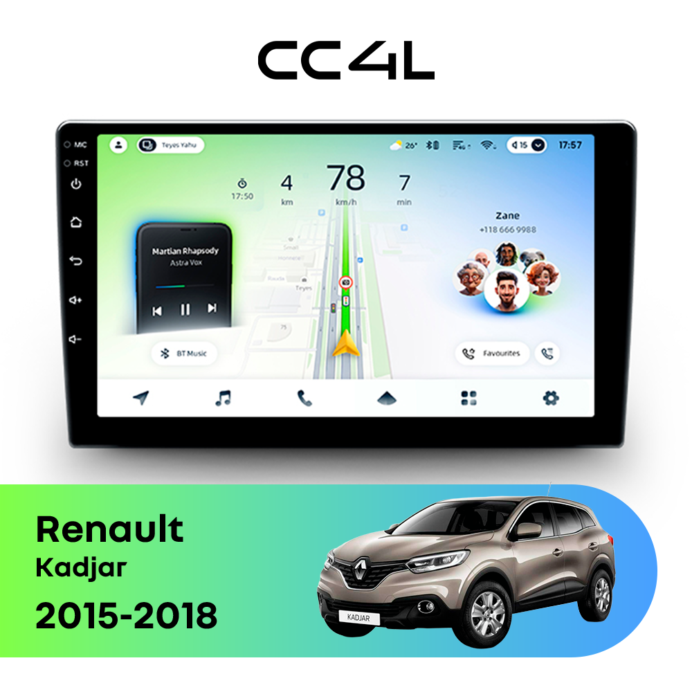Если вам нужна магнитола для Renault Kadjar I (2015-2018), штатное головное устройство Android, мультимедиа в авто, автомагнитола с большим экраном и хорошим набором функций по доступной цене, Teyes CC4L станет грамотной покупкой на каждый день.