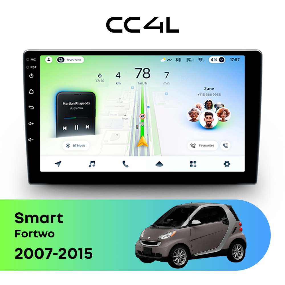 Автомагнитола Teyes CC4L — это доступная магнитола Android, созданная для владельцев Smart Fortwo II (2007-2015), которым нужна практичная и функциональная мультимедийная система без переплаты. Магнитола Teyes CC4L делает салон Smart Fortwo более удобным и современным для повседневных поездок, предлагая все основные возможности Android магнитолы. Данная магнитола работает на системе Android и оснащена энергоэффективным 8-ядерным процессором Qualcomm QCM2290, который обеспечивает стабильную работу навигации, музыки и мультимедиа в автомобиле. Конфигурация 4Gb оперативной памяти и 64Gb встроенной памяти оптимально подходит для базовых задач — навигации, музыки и видео в Smart Fortwo (II (2007-2015)). Магнитола Teyes CC4L оборудована In-cell QLED дисплеем диагональю 9" с разрешением 1280×720 пикселей, что обеспечивает хорошее качество изображения для своего ценового сегмента и комфортное использование в салоне Smart Fortwo. Автомагнитола поддерживает Яндекс Навигатор, YouTube, Google Play, камеру заднего вида и штатные кнопки на руле — всё необходимое для удобной и безопасной эксплуатации в Smart Fortwo II (2007-2015). Магнитола Teyes CC4L — одно из лучших бюджетных решений среди Android магнитол. Если вам нужна недорогая, надежная и современная магнитола для Smart Fortwo — автомагнитола Teyes CC4L станет правильным выбором.
