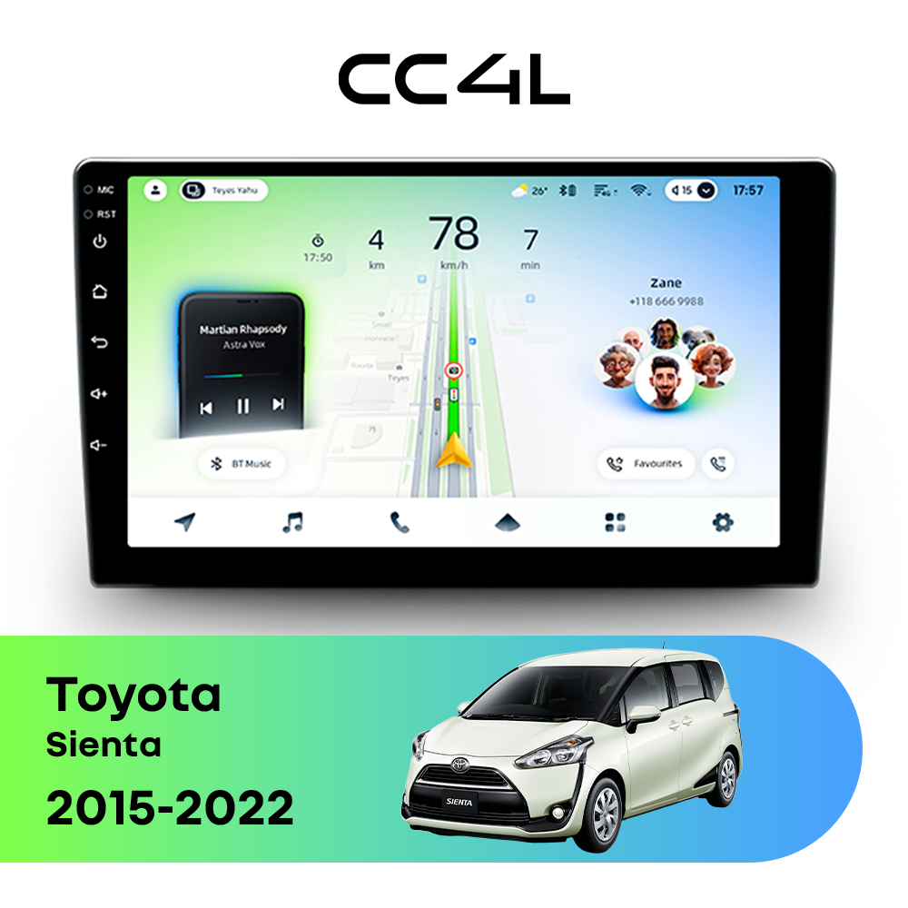 Teyes CC4L для Toyota Sienta 2015-2022 — современная штатная магнитола на базе Teyes OS Android 14, которая сочетает удобный Android-интерфейс, востребованные функции и доступный формат для повседневного использования в автомобиле.