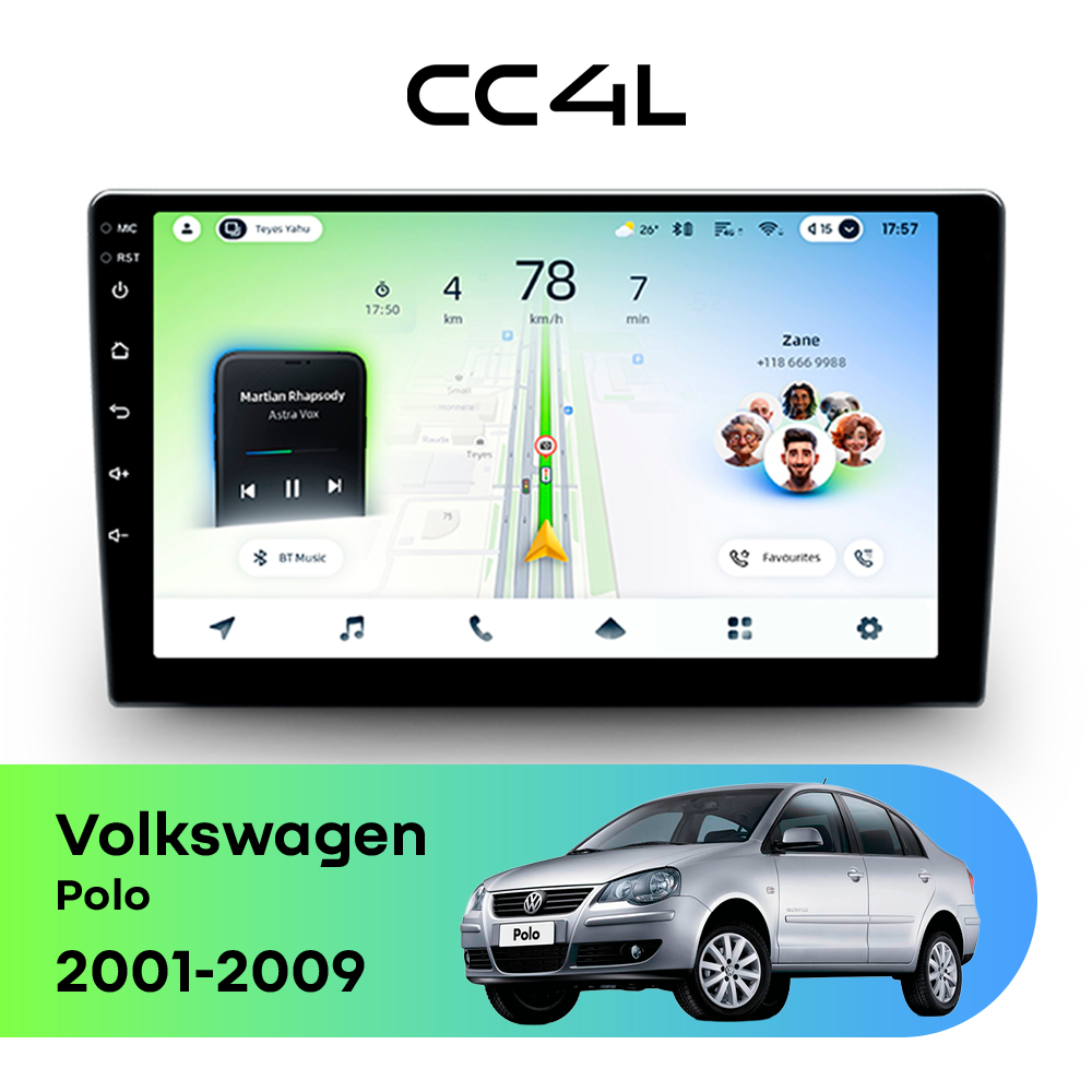 Teyes CC4L для Volkswagen Polo IV (2001-2005),IV рестайлинг (2005-2009) — это современная штатная магнитола Android, созданная для тех, кто хочет получить максимум полезных функций за разумные деньги. Если вам нужна автомагнитола для Volkswagen Polo с большим экраном, удобной навигацией, поддержкой приложений и приятным интерфейсом, эта модель станет отличным выбором для ежедневной эксплуатации.