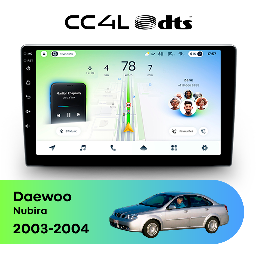 Teyes CC4L DTS для Daewoo Nubira 2003-2004 — штатная Android-магнитола с современным мультимедийным функционалом и акцентом на более насыщенное и качественное звучание в автомобиле.