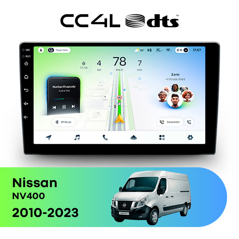 Teyes CC4L DTS для Nissan NV400 2010-2023 — штатная Android-магнитола с современным мультимедийным функционалом и акцентом на более насыщенное и качественное звучание в автомобиле.