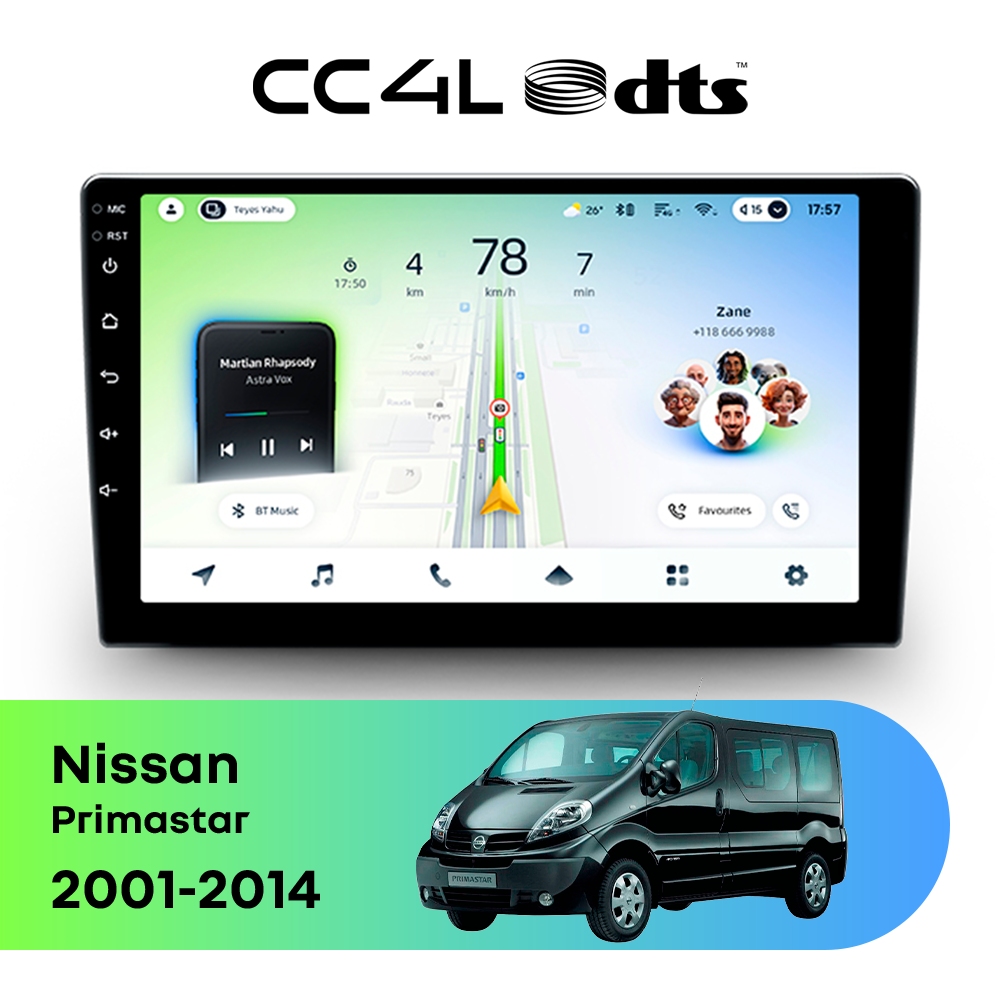 Teyes CC4L DTS для Nissan Primastar 2001-2014 — штатная Android-магнитола с современным мультимедийным функционалом и акцентом на более насыщенное и качественное звучание в автомобиле.