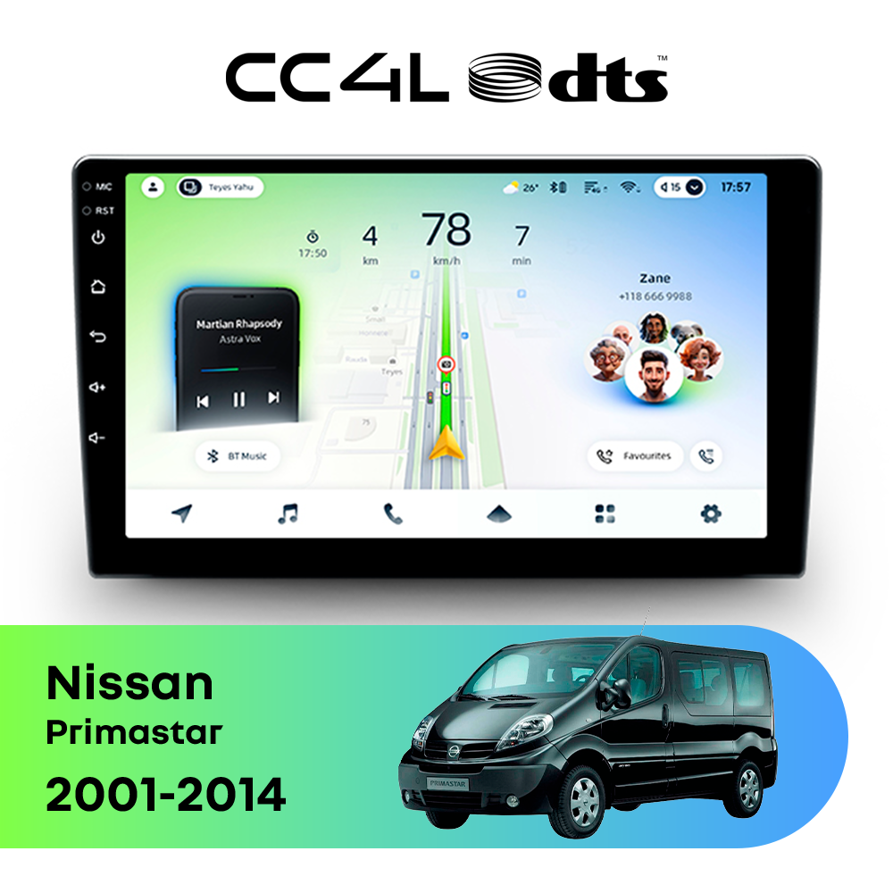 Teyes CC4L DTS для Nissan Primastar 2001-2014 — штатная Android-магнитола с современным мультимедийным функционалом и акцентом на более насыщенное и качественное звучание в автомобиле.