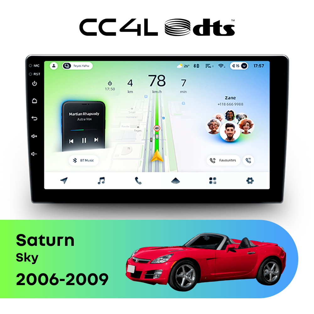 Teyes CC4L DTS для Saturn Sky 2006-2009 — штатная Android-магнитола с современным мультимедийным функционалом и акцентом на более насыщенное и качественное звучание в автомобиле.