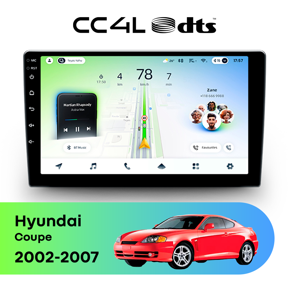 Teyes CC4L DTS Audio для Hyundai Coupe II (2002-2007) — это современная штатная магнитола Android, созданная для тех, кто хочет получить максимум полезных функций за разумные деньги. Если вам нужна автомагнитола для Hyundai Coupe с большим экраном, удобной навигацией, поддержкой приложений и приятным интерфейсом, эта модель станет отличным выбором для ежедневной эксплуатации.