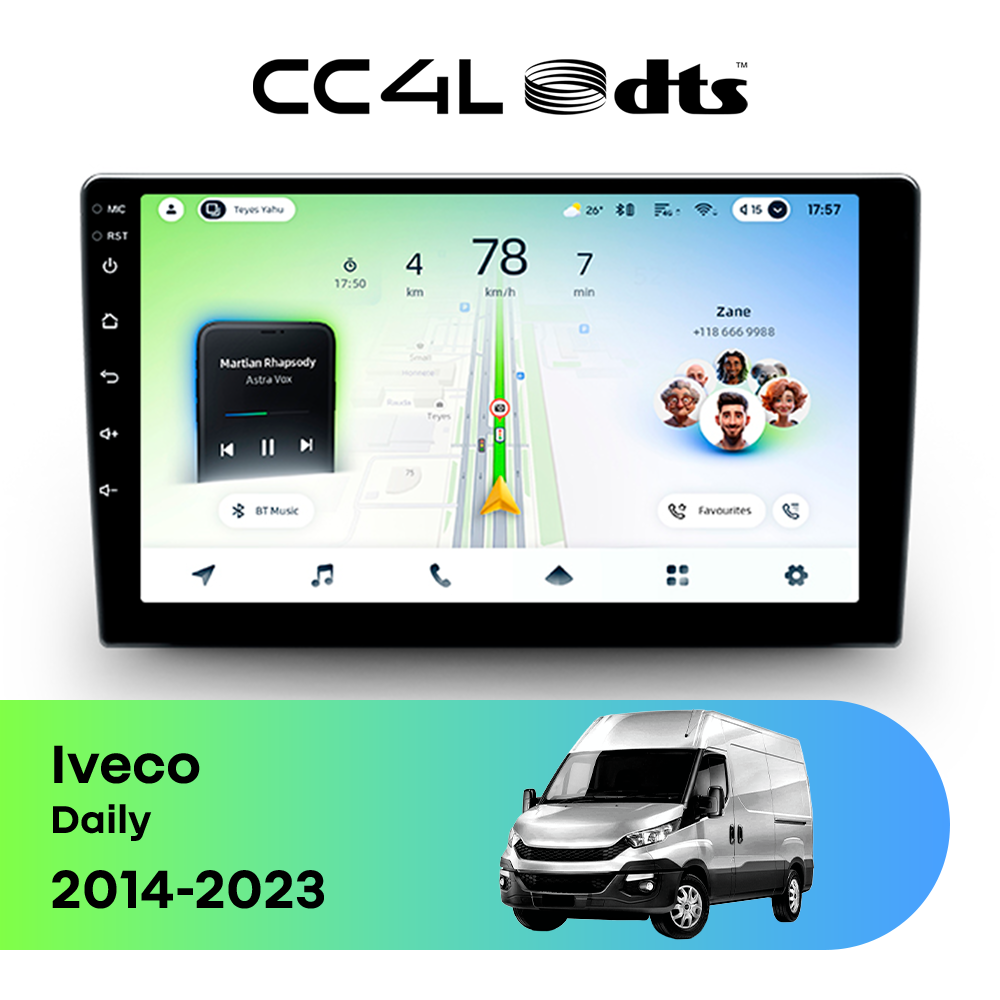 Teyes CC4L DTS для Iveco Daily 2014-2023 — штатная Android-магнитола с современным мультимедийным функционалом и акцентом на более насыщенное и качественное звучание в автомобиле.