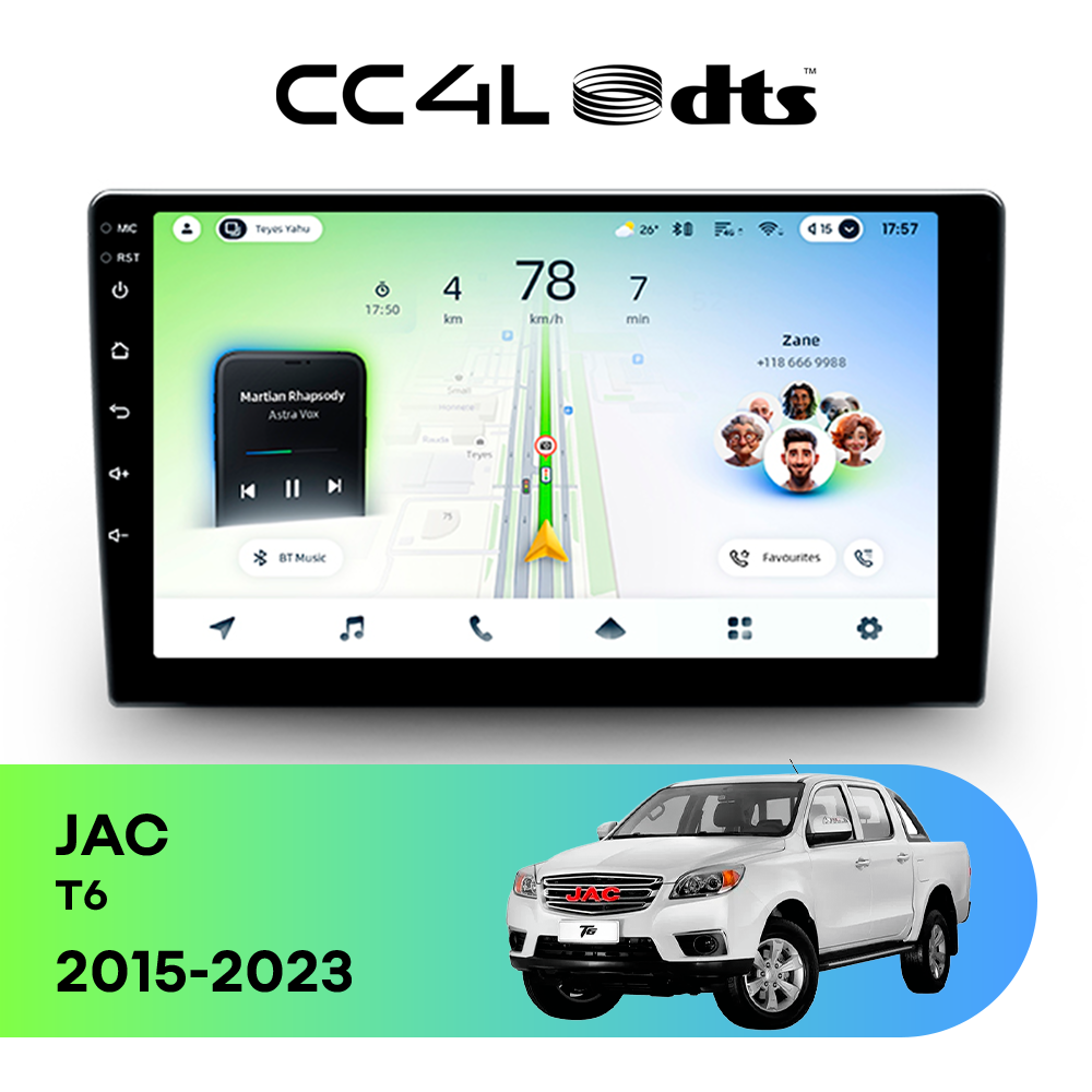 Teyes CC4L DTS для JAC T6 2015-2023 — штатная Android-магнитола с современным мультимедийным функционалом и акцентом на более насыщенное и качественное звучание в автомобиле.
