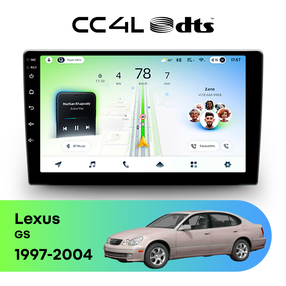 Teyes CC4L DTS для Lexus GS 1997-2004 — штатная Android-магнитола с современным мультимедийным функционалом и акцентом на более насыщенное и качественное звучание в автомобиле.