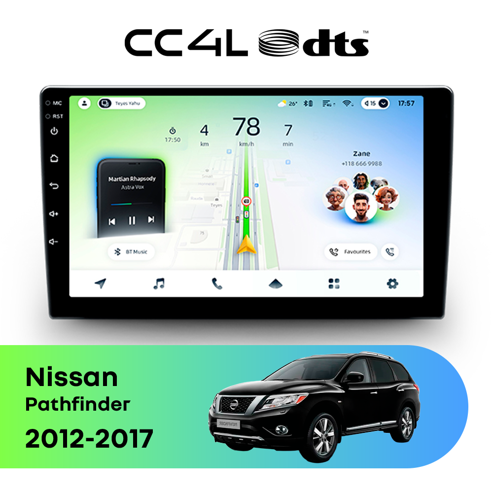 Teyes CC4L DTS для Nissan Pathfinder 2012-2017 — штатная Android-магнитола с современным мультимедийным функционалом и акцентом на более насыщенное и качественное звучание в автомобиле.