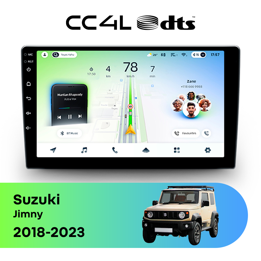 Teyes CC4L DTS для Suzuki Jimny 2018-2023 — штатная Android-магнитола с современным мультимедийным функционалом и акцентом на более насыщенное и качественное звучание в автомобиле.
