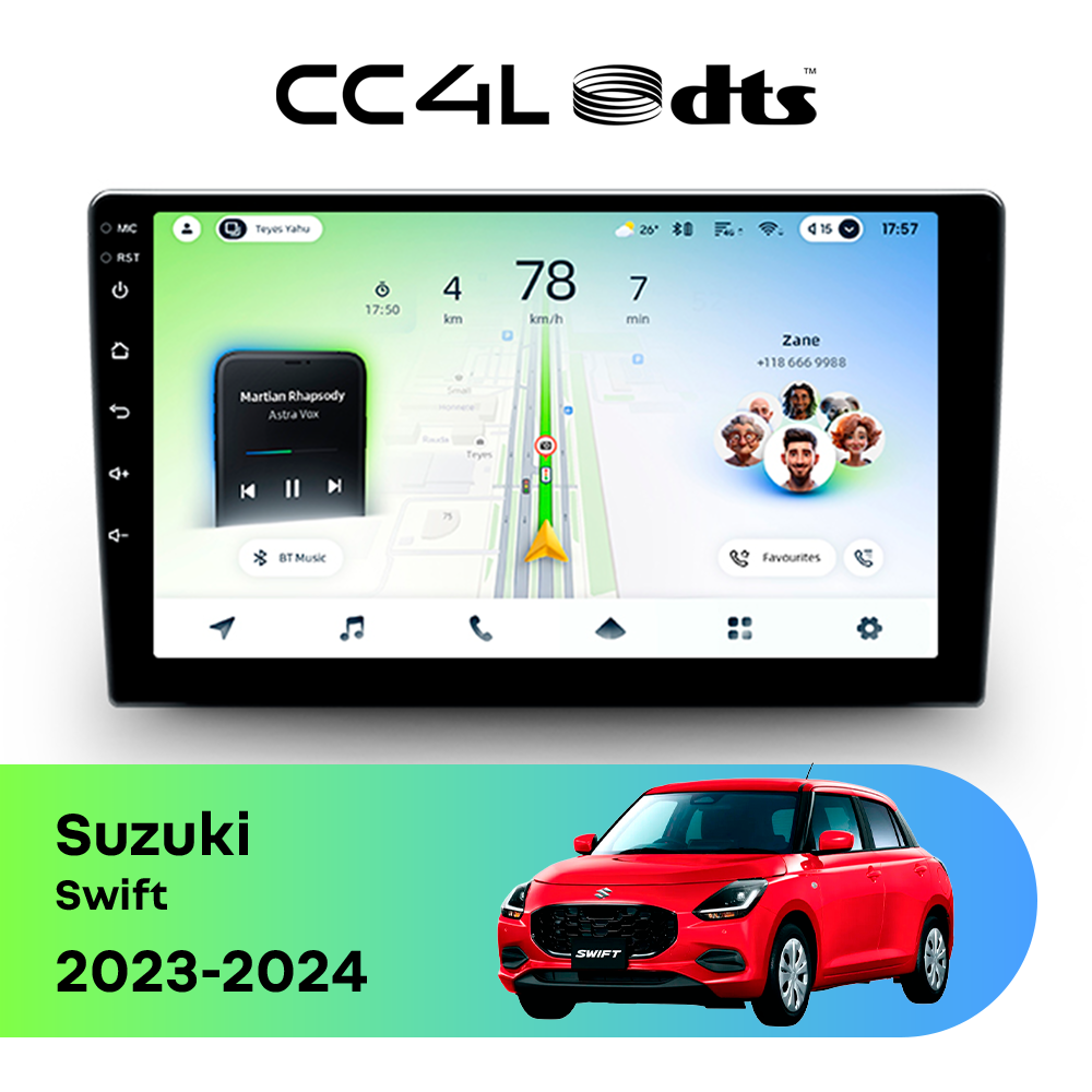 Teyes CC4L DTS для Suzuki Swift 2023-2024 — штатная Android-магнитола с современным мультимедийным функционалом и акцентом на более насыщенное и качественное звучание в автомобиле.