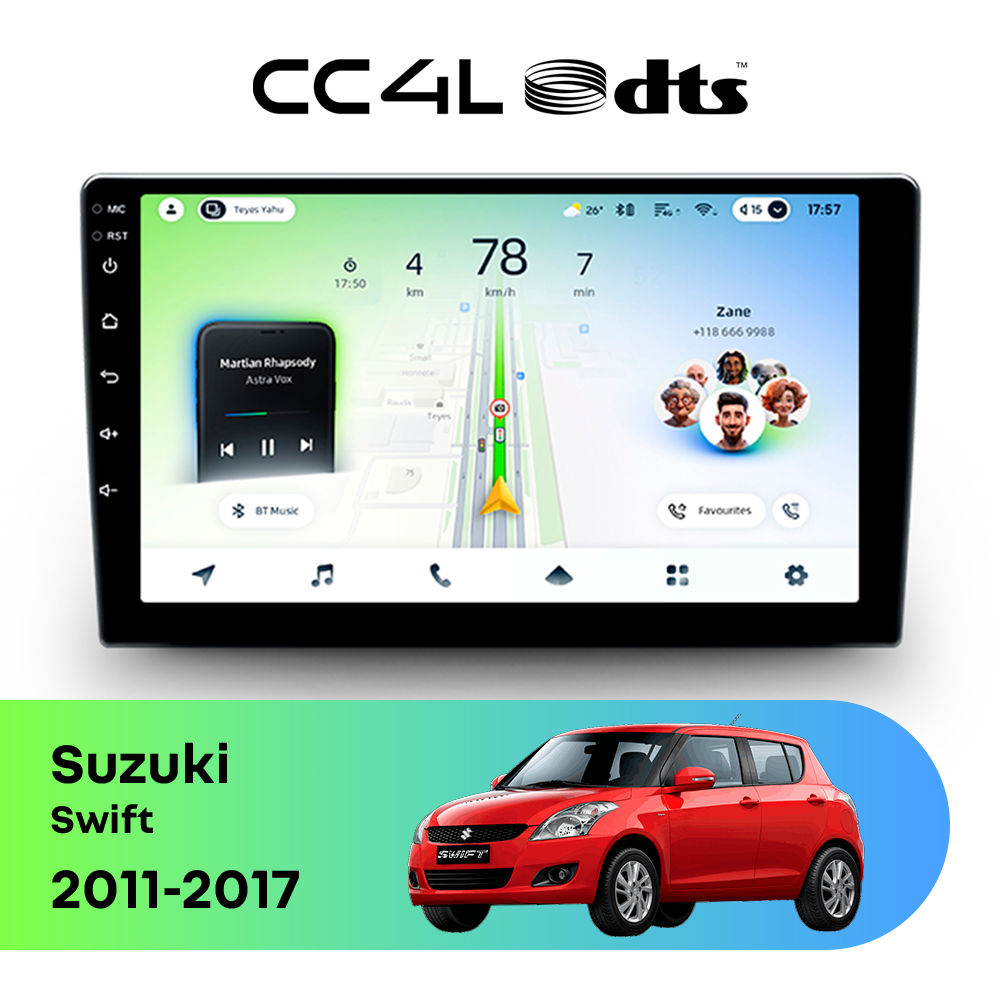 Teyes CC4L DTS для Suzuki Swift 2011-2017 — штатная Android-магнитола с современным мультимедийным функционалом и акцентом на более насыщенное и качественное звучание в автомобиле.