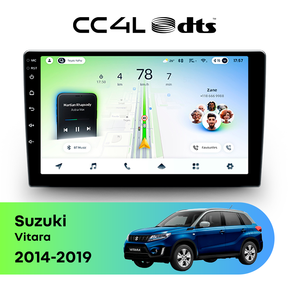 Teyes CC4L DTS для Suzuki Vitara 2014-2019 — штатная Android-магнитола с современным мультимедийным функционалом и акцентом на более насыщенное и качественное звучание в автомобиле.