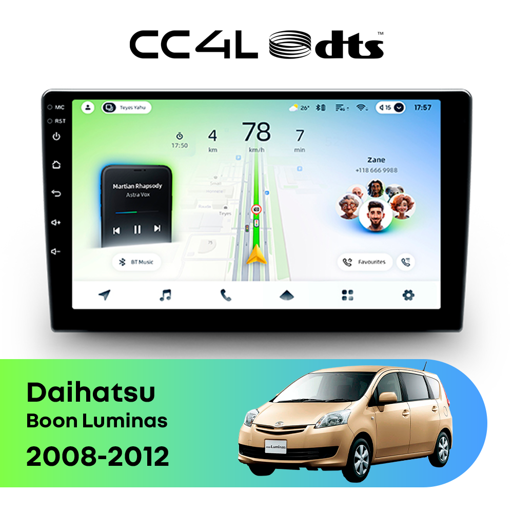 Teyes CC4L DTS для Daihatsu Boon Luminas 2008-2012 — штатная Android-магнитола с современным мультимедийным функционалом и акцентом на более насыщенное и качественное звучание в автомобиле.