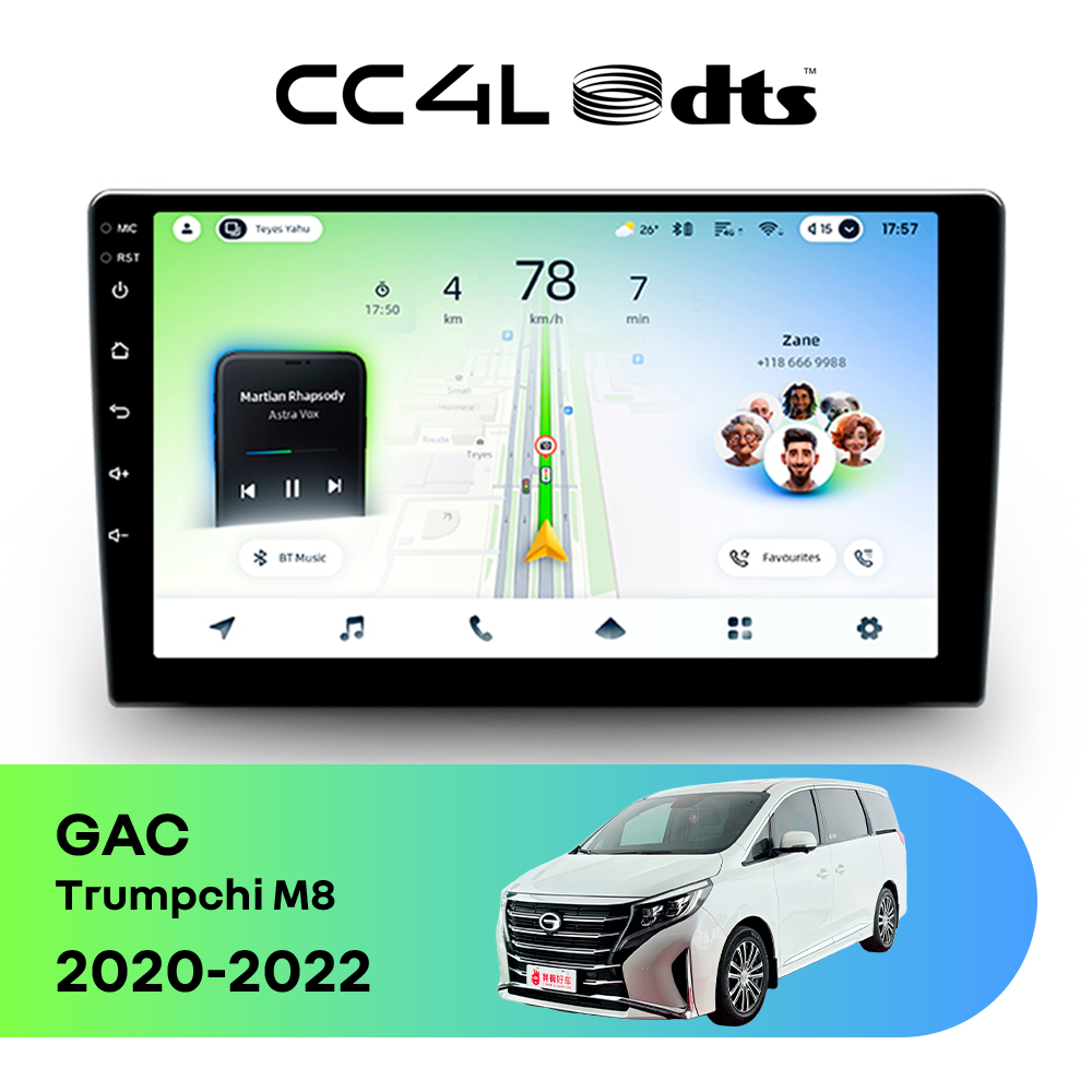 Teyes CC4L DTS Audio для GAC Trumpchi M8 (2020-2022) — это современная штатная магнитола Android, созданная для тех, кто хочет получить максимум полезных функций за разумные деньги. Если вам нужна автомагнитола для GAC Trumpchi M8 с большим экраном, удобной навигацией, поддержкой приложений и приятным интерфейсом, эта модель станет отличным выбором для ежедневной эксплуатации.