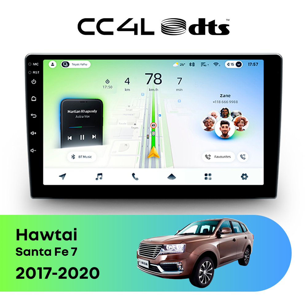 Teyes CC4L DTS для Hawtai Santa Fe 7 2017-2020 — штатная Android-магнитола с современным мультимедийным функционалом и акцентом на более насыщенное и качественное звучание в автомобиле.