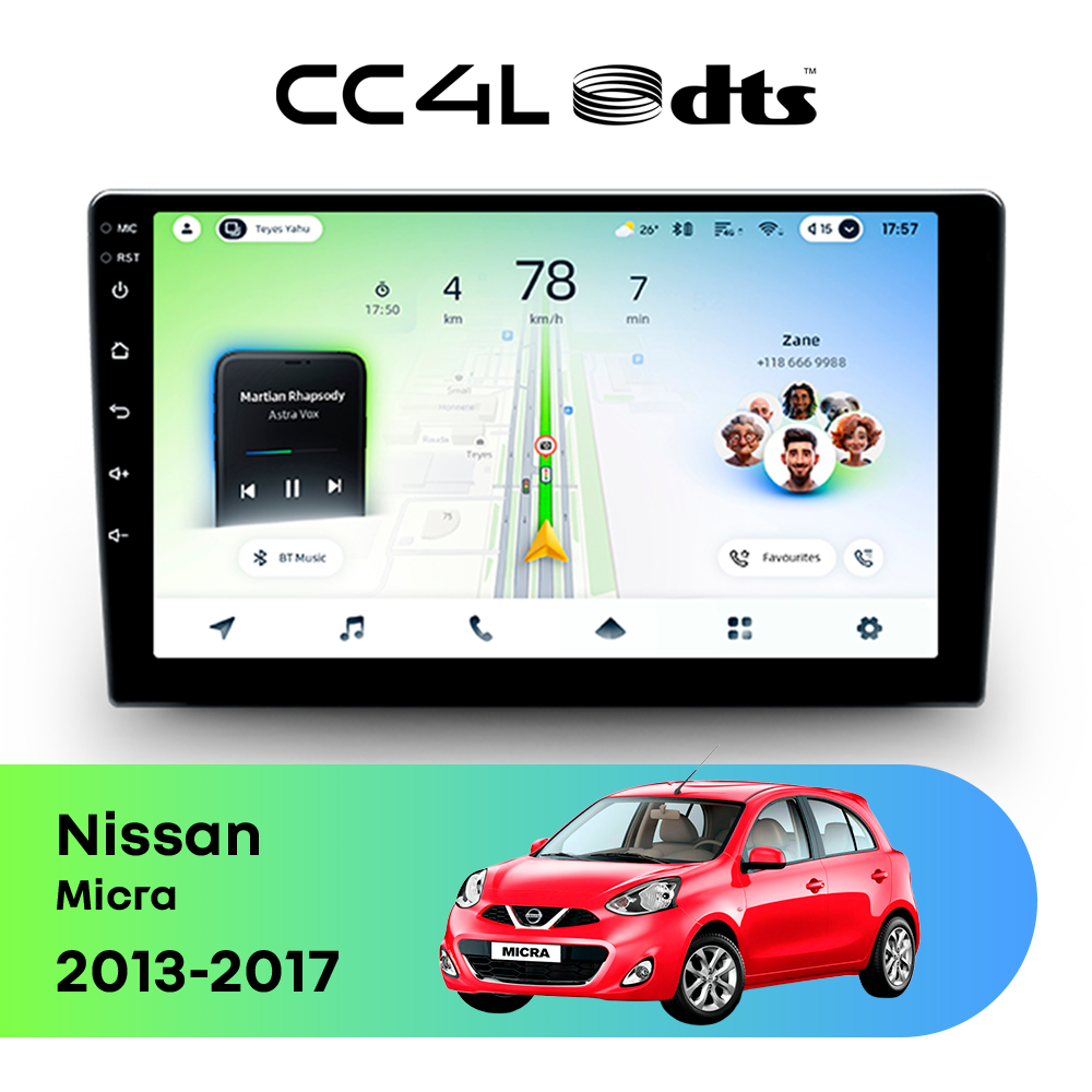 Teyes CC4L DTS для Nissan Micra 2013-2017 — штатная Android-магнитола с современным мультимедийным функционалом и акцентом на более насыщенное и качественное звучание в автомобиле.