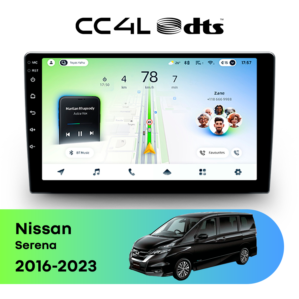 Teyes CC4L DTS для Nissan Serena 2016-2023 — штатная Android-магнитола с современным мультимедийным функционалом и акцентом на более насыщенное и качественное звучание в автомобиле.