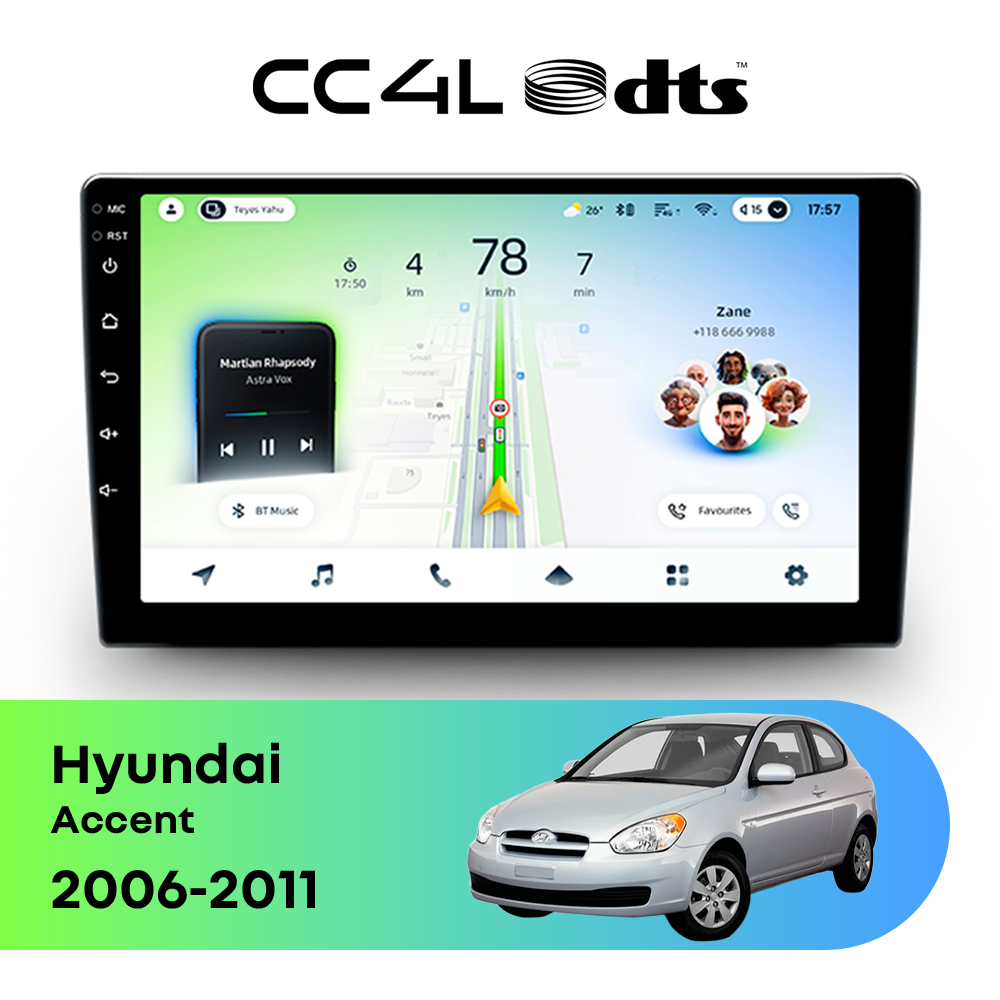 Teyes CC4L DTS Audio для Hyundai Accent III (2006-2011) — это современная штатная магнитола Android, созданная для тех, кто хочет получить максимум полезных функций за разумные деньги. Если вам нужна автомагнитола для Hyundai Accent с большим экраном, удобной навигацией, поддержкой приложений и приятным интерфейсом, эта модель станет отличным выбором для ежедневной эксплуатации.