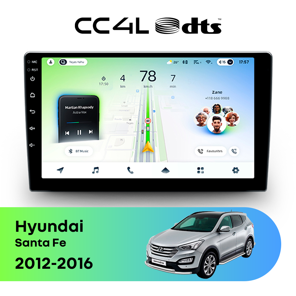 Teyes CC4L DTS Audio для Hyundai Santa Fe III (2012-2016) — это современная штатная магнитола Android, созданная для тех, кто хочет получить максимум полезных функций за разумные деньги. Если вам нужна автомагнитола для Hyundai Santa Fe с большим экраном, удобной навигацией, поддержкой приложений и приятным интерфейсом, эта модель станет отличным выбором для ежедневной эксплуатации.