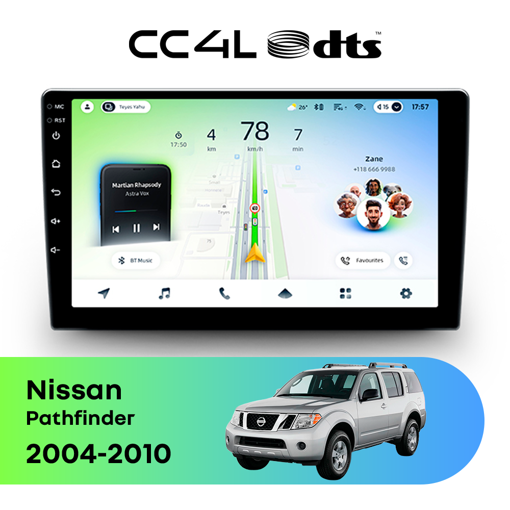 Teyes CC4L DTS для Nissan Pathfinder 2004-2010 — штатная Android-магнитола с современным мультимедийным функционалом и акцентом на более насыщенное и качественное звучание в автомобиле.